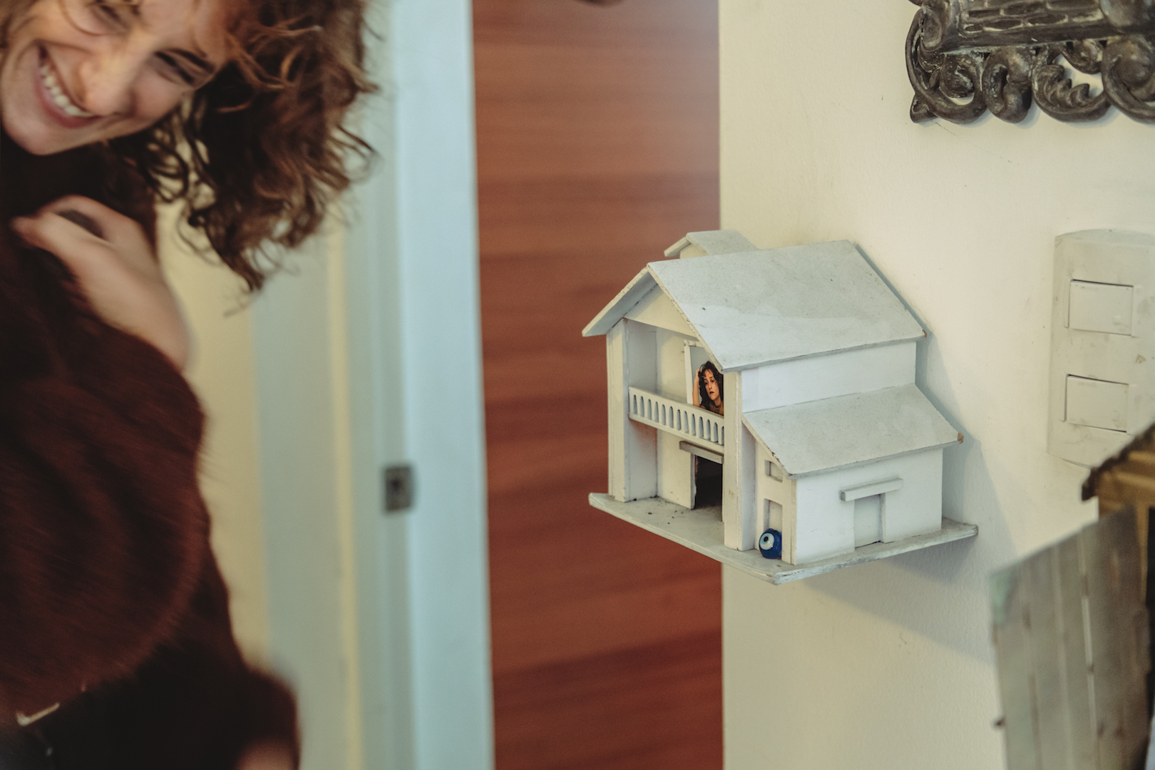 Tuvo una novia que le dijo que debía construir una casita que sea solo para ella. No se refería a un espacio físico, sino a un hogar suyo mas allá de su familia, de sus amigos, de su oficio; “un lugar al que pudiera volver pase lo que pase, mi safe zone, que esté dentro de mí y al que solo yo pueda entrar”, explica Nuria Zapata, que nunca olvidó esas palabras. Hoy vive en la primera planta de una casa chorrillana y ahí ha montado un altar con dos pequeñas maquetas donde guarda fotos carné, semillas, ojos turcos y otros elementos protectores, que representan ese lugar donde ella se sabe, se entiende.