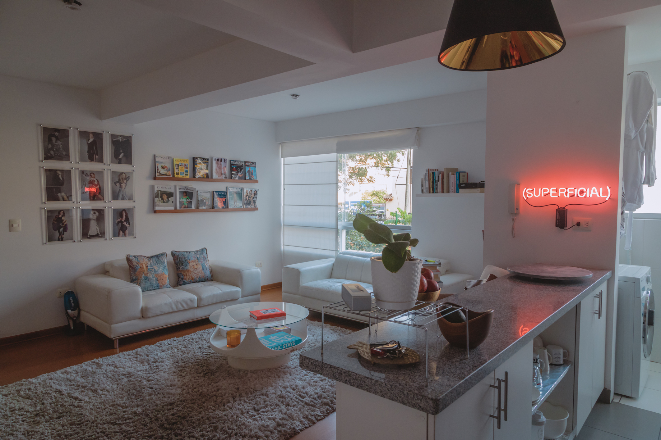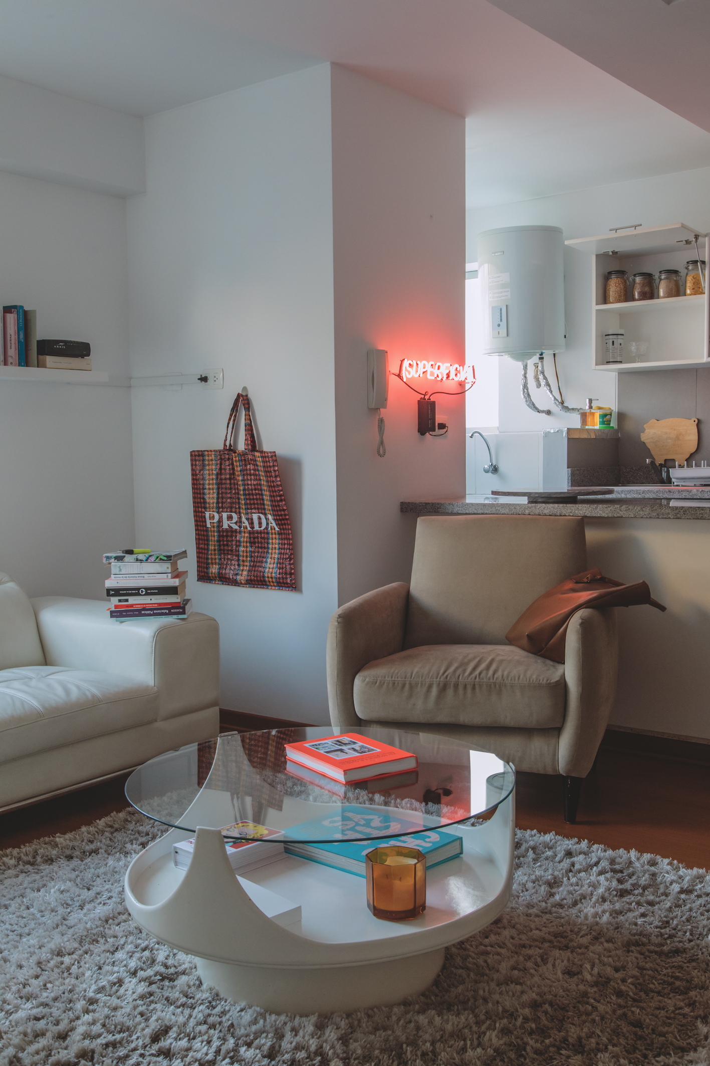 SUPERFICIAL. Su agencia es boutique, sus clientes son de lujo, y los eventos y productos con los que trabaja son exclusivos. SUPERFICIAL. Cuando aún estaba en la universidad le preocupaba que otras personas pensaran mal de ella porque le gustaba la ropa, ir a cocteles, ver las fotos de sociales, y eso demoró su decisión de dedicarse a las relaciones públicas. “Era un prejuicio que yo misma tenía; me sentía mal, muy acusada socialmente”, recuerda. SUPERFICIAL, dicen las letras de neón del artista Daniel Torres Calderón que Pamela ha instalado en medio de su departamento, como una ironía, un recordatorio y un ancla a tierra.