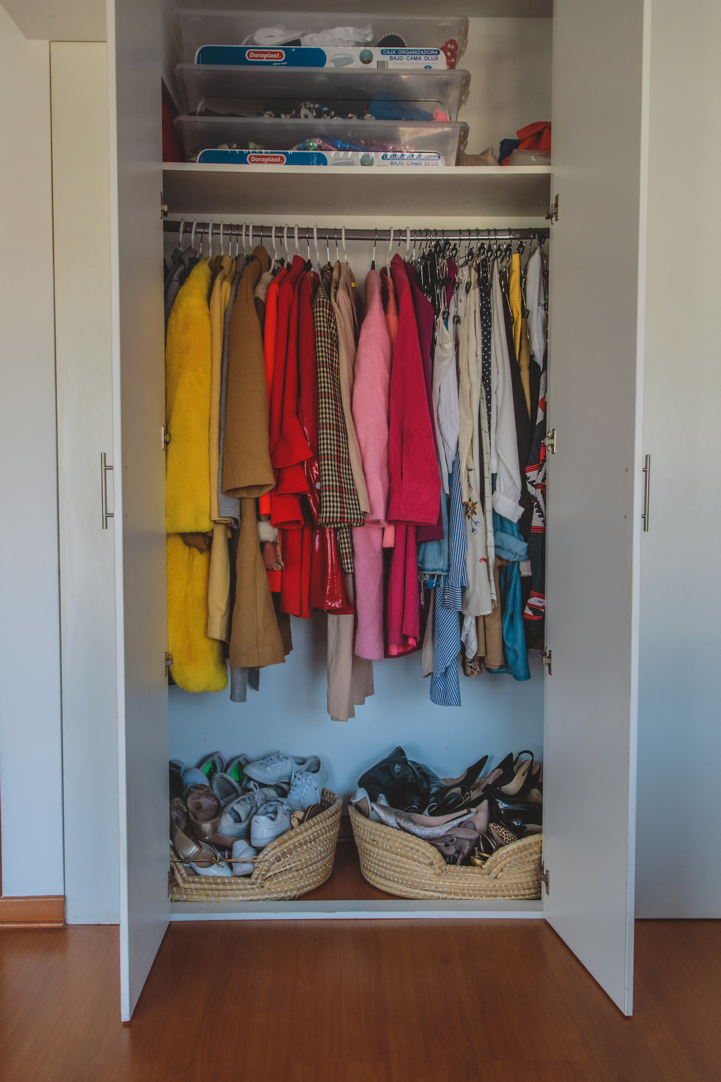 Pamela tiene una manera muy particular de ser ordenada y sobre todo de organizar sus hábitos. Es sorprendente. Sobre su escritorio pueden verse unos post-it de colores con los que lleva la cuenta de los días que corrió, que fue al entrenamiento funcional o que hizo yoga; su clóset está muy bien dividido en estaciones y colores, además tiene dos grandes canastas en donde van sus zapatos más relajados y los de salidas. Afuera del armario tiene un par de percheros donde deja preparada la ropa que va a utilizar para los cocteles, eventos y reuniones de la semana. Así no tiene que perder tiempo a la hora de vestirse.