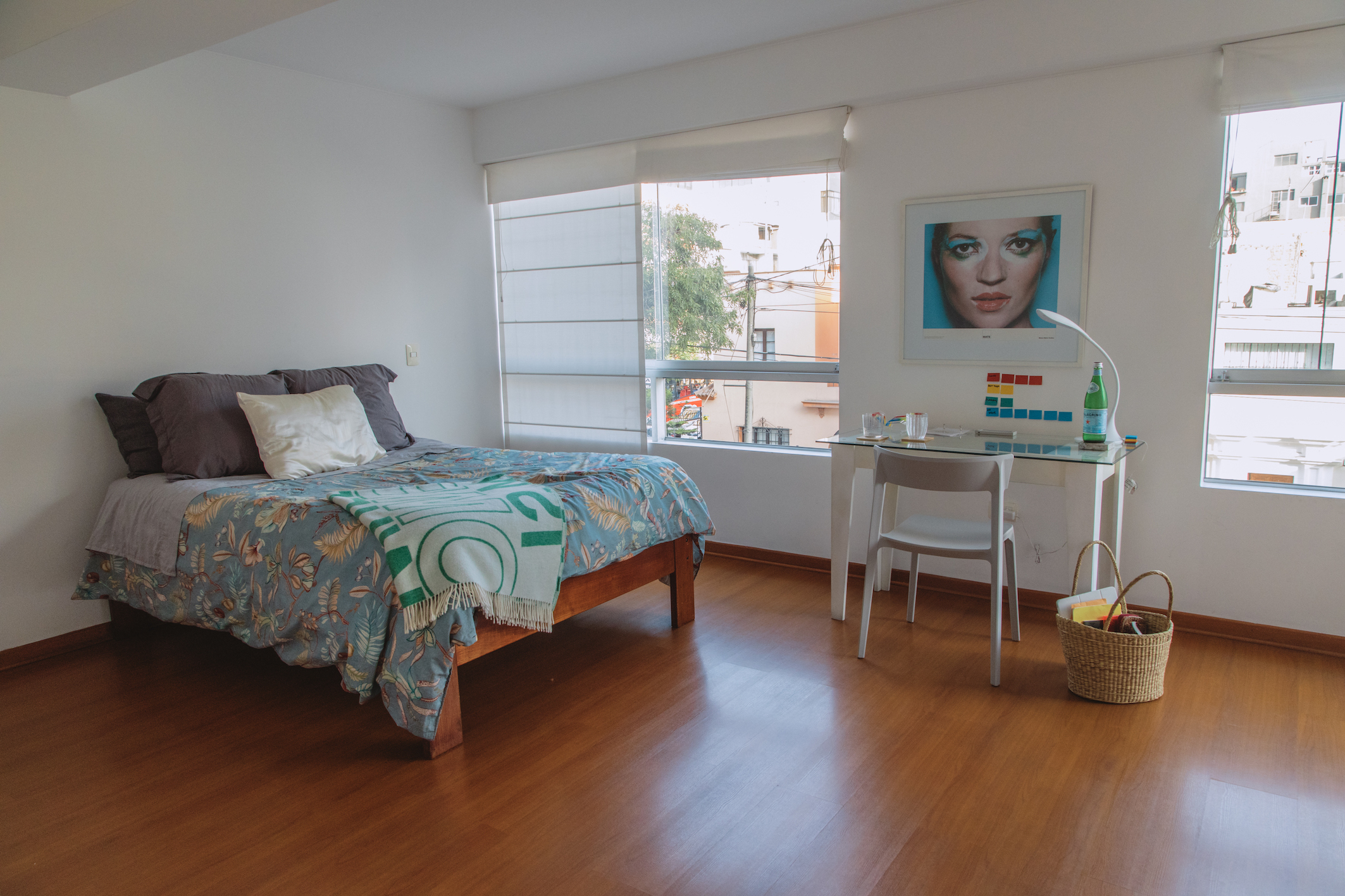Su habitación ocupa toda la planta superior del dúplex. Es un dormitorio amplio, donde tiene su clóset y un pequeño escritorio. Sus momentos más analíticos, donde traza estrategias para sus clientes, son en su oficina; pero los momentos de inspiración ocurren aquí: en su escritorio, desde su iPad.