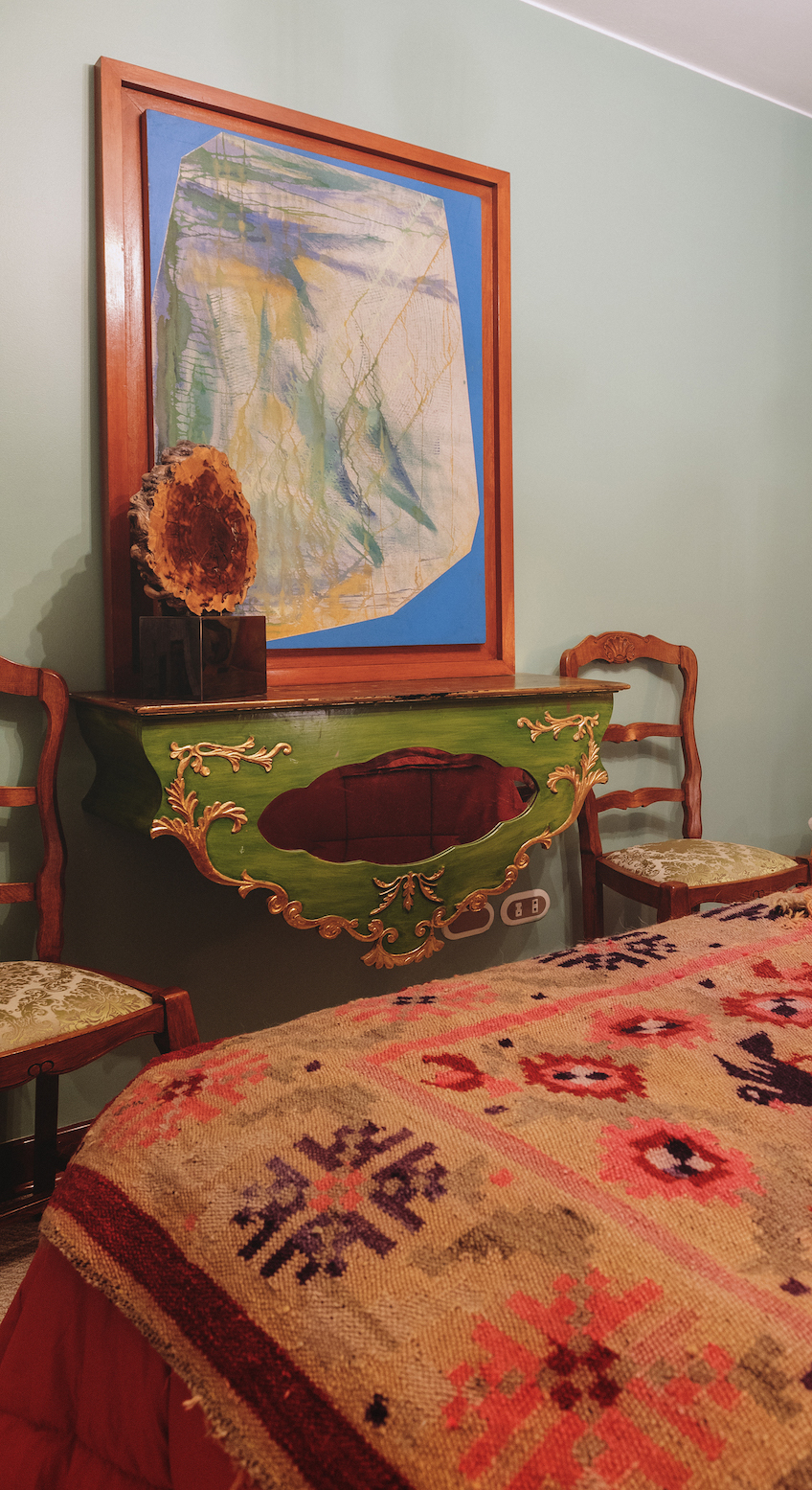 Su estilo personal es ecléctico: podría decirse que le gusta todo en la medida en que sea correcto, que esté justificado y que se sostenga más allá de una moda o una tendencia. Como diseñador escucha mucho al cliente, pero tiene una regla de oro: cuando las cosas dejan de ser funcionales y se vuelven puramente decorativas, pierden su propósito. “No hay que ser ecléctico porque sí, sino porque a uno le nace y le aporta cada objeto, sino es un rejunte de cosas sin sentido”, aconseja Ignacio. Y es que el eclecticismo (la reunión de varias ideas y tendencias) debería ser la suma de todos tus intereses: puede verse como el reflejo de una riqueza interior, de la curiosidad. A Ignacio y Alejandro les interesan muchas cosas: la música, el arte, el cine. Ignacio dibuja desde chico y en su sala se luce el primer óleo que ha pintado en el Perú.