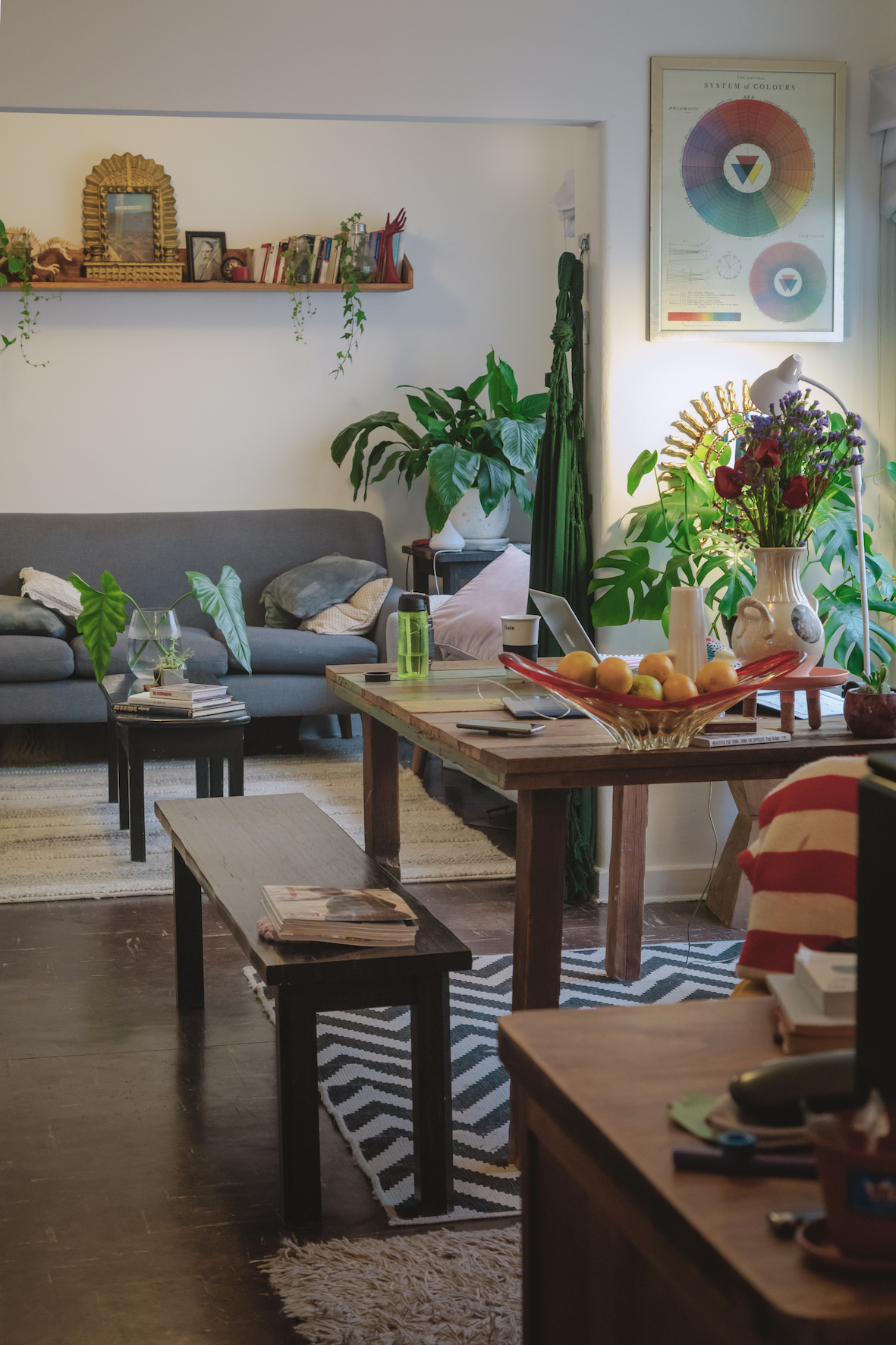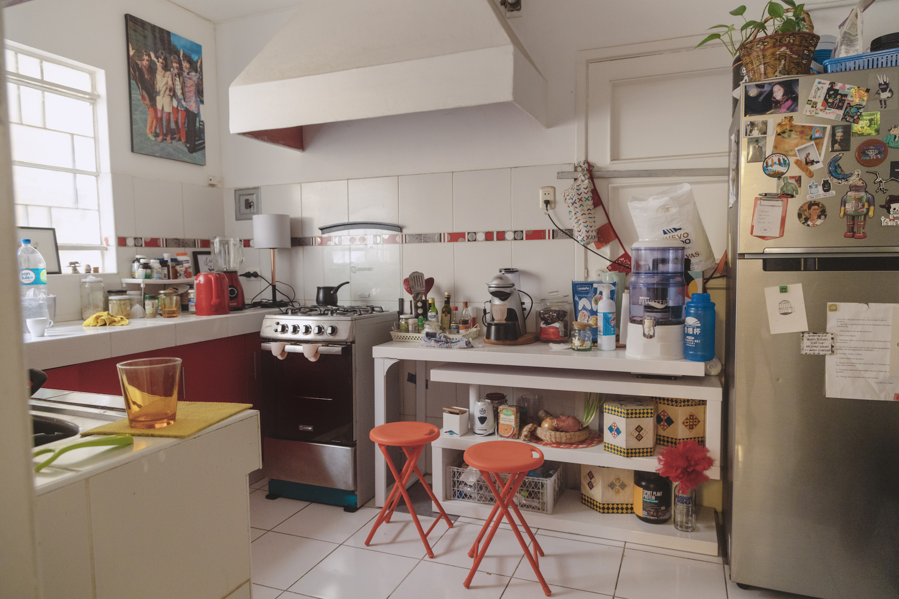Hilda vivía en un depa muy bonito en Barranco, pero la responsabilidad de pagar ese alquiler más el de su estudio fotográfico era fuerte. Por otro lado, le aburrió que el espacio fuera tan chico y que haga tanto calor en el verano, ya que la disposición de las ventanas no la protegía en ningún momento durante las tardes, mientras moría el sol. “Este lugar, en cambio, es bien oscuro y quizás antes no lo hubiera elegido”, dice Hilda sobre el depa que comparte con Gabriela. “Pero luego de vivir en un lugar tan expuesto a la luz todo el rato, me di cuenta de que eso no es tan chévere y que también necesito algo de oscuridad”.
