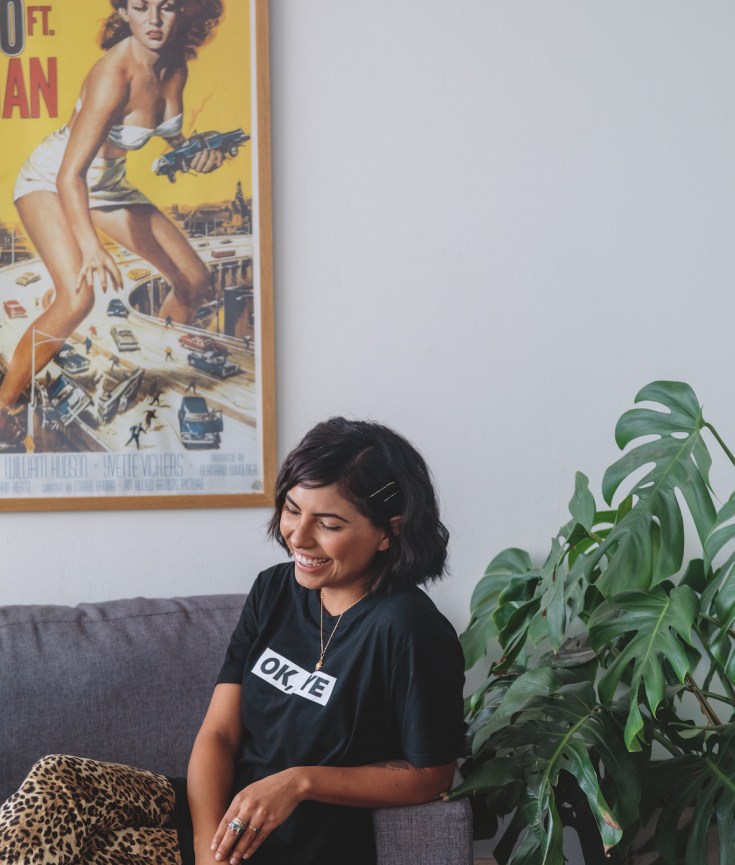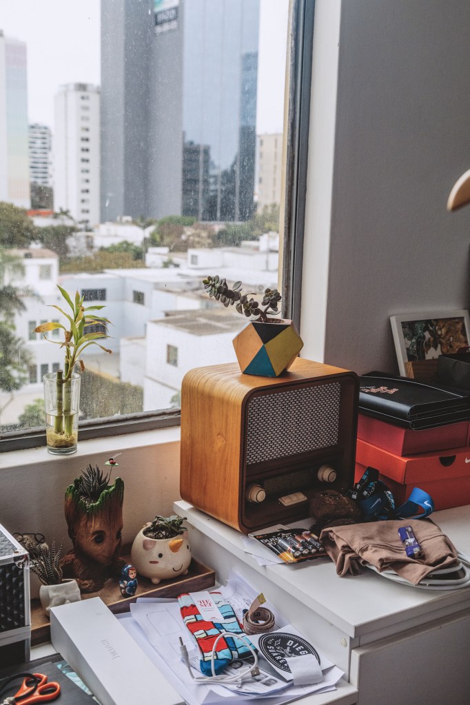 Hace 3 años se mudaron aquí con la refrigeradora y un colchón. Les ha tomado todo este tiempo tener el depa como está ahora: así, lleno de prints, adornos y plantas. El próximo año lo dejarán porque se han comprado un depa, ya propio. Pero ni siquiera saben cuánto tiempo se van a quedar después de la mudanza: Jaime, que español y productor de películas 3D, quiere regresar a Madrid porque la industria es mucho más grande. Probablemente se vayan del Perú a fines del 2020. Ale se llevará su ropa, su ukelele, pero no mucho más (aunque le daría mucha pena dejar su colección de vinilos). No tiene idea qué hará ella en Madrid, cómo manejará a la distancia su marca o cómo seguirá trabajando en la productora. Pero se lo toma con calma y piensa que dejará que las cosas ocurran: “Todo ha surgido así en mi vida
