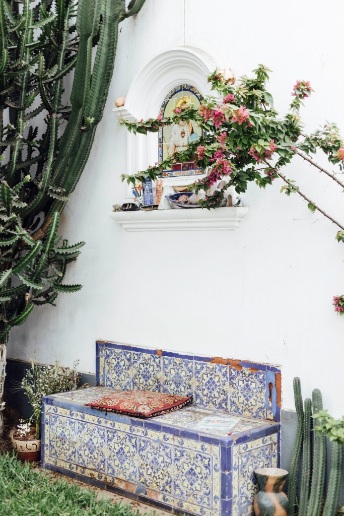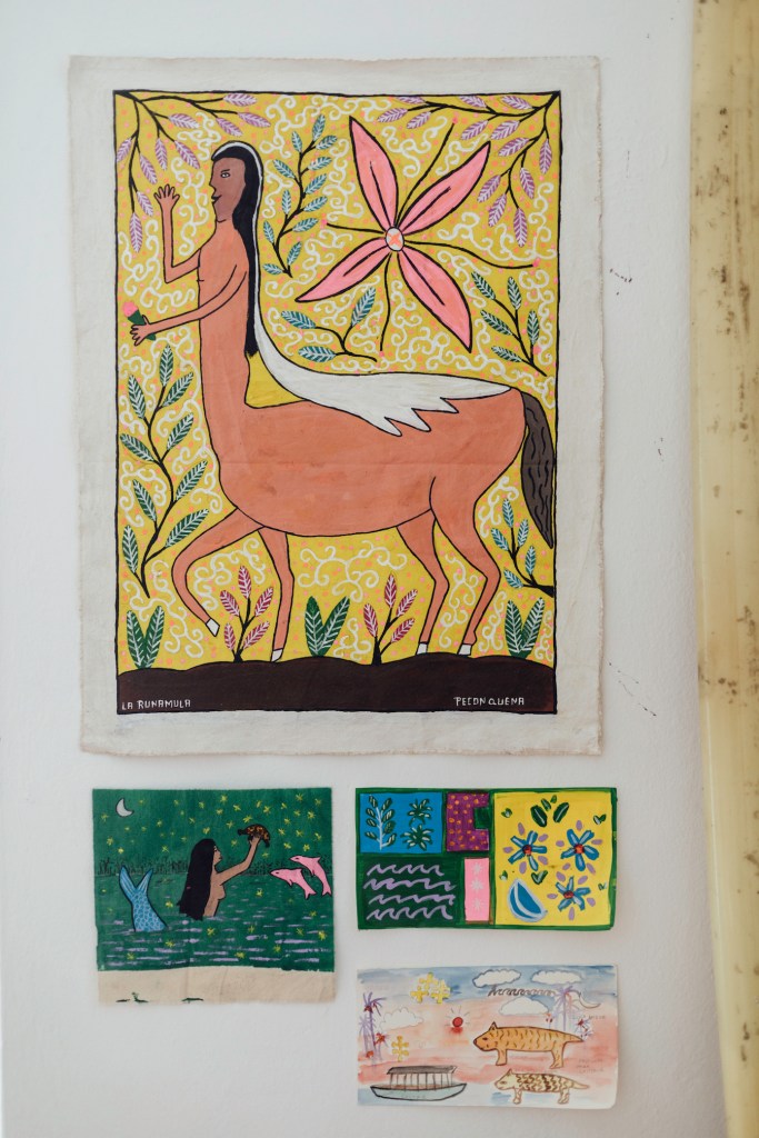 La casa es especial por varias razones. Primero, porque ha sido hogar y taller de otros artistas, como Gilda Mantilla, Claudia Salem y Aldo Chaparro. Segundo, porque está en una encantadora callecita de Chorrillos, casi casi en el malecón. Y tercero, por la casa misma: por esa antigüedad que aún conservan sus pisos originales, su altura y sus frisos; por la enorme buganvilia que cobija la mitad de la construcción; por la generosidad de sus dimensiones y por ese aire a casita de pueblo y de costa que a Aileen simplemente le encanta.