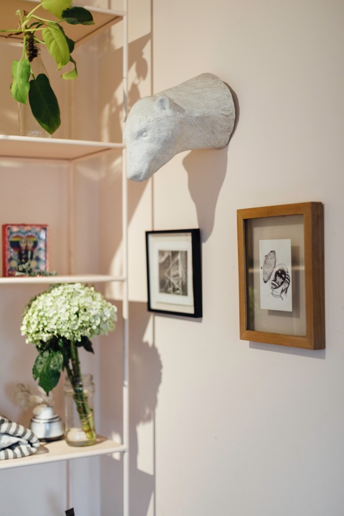 Recibió la ayuda de “amigas muy capas”: la arquitecta Augusta Pastor encontró el perfecto tono de peach que le da una bonita vida a su sala, y la arquitecta Pamela Remy hizo la repisa que realmente arma el espacio. Casi no necesitó más. Sin embargo, Daniel confiesa que le tiene un montón de miedo al vacío, y que le gusta llenar paredes. Por ejemplo, quiere una alfombra y seguro acabará teniéndola, pero es alérgico. “Lima me mata”, dice.
