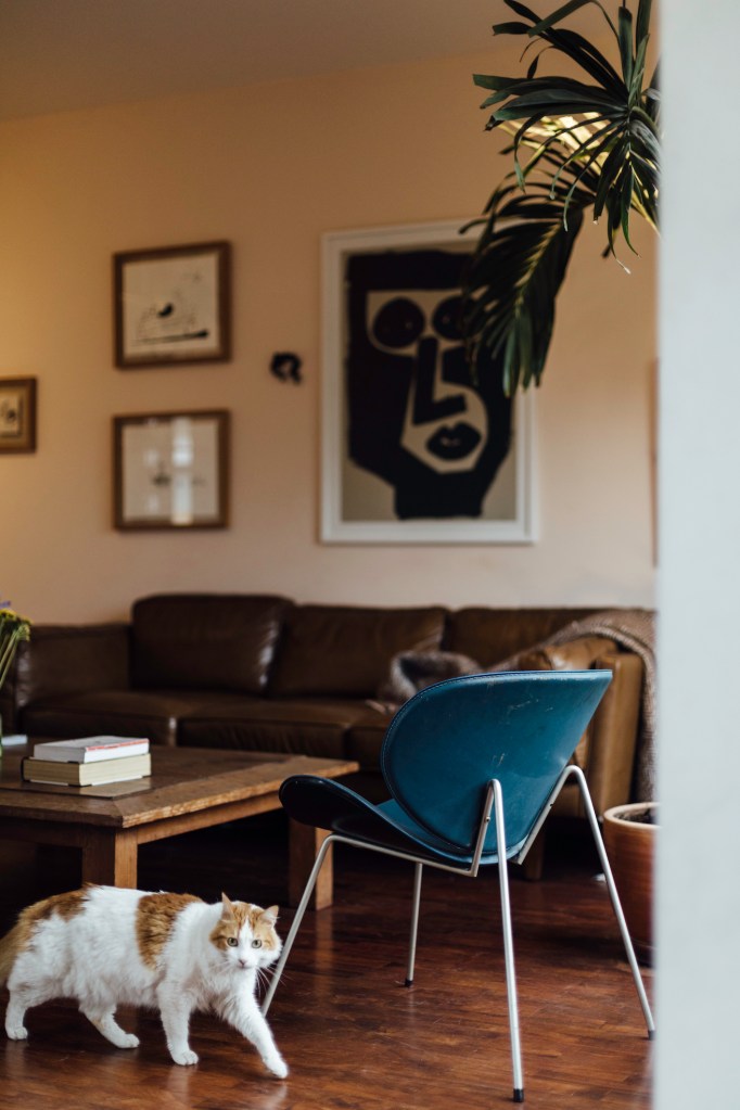 Hasta el año pasado este lugar era el centro de la fiesta, pero llegó un punto en el que no quiso más. Ahora lo ve genial para tener una cita, invitar a tres o cuatro personas a cenar o tomarse un café solo. Sí quisiera cambiar la mesa del comedor, porque está un poco cansado de la onda “rinconcito italiano” (aunque es encantador). Aquí hace pilates con una profesora que viene a verlo; en el verano tiene todas las puertas y ventanas abiertas y el depa se llena de bichos, pero no le importa. Además, María la gata es feliz persiguiéndolos. El depa sigue cambiando como va cambiando él.