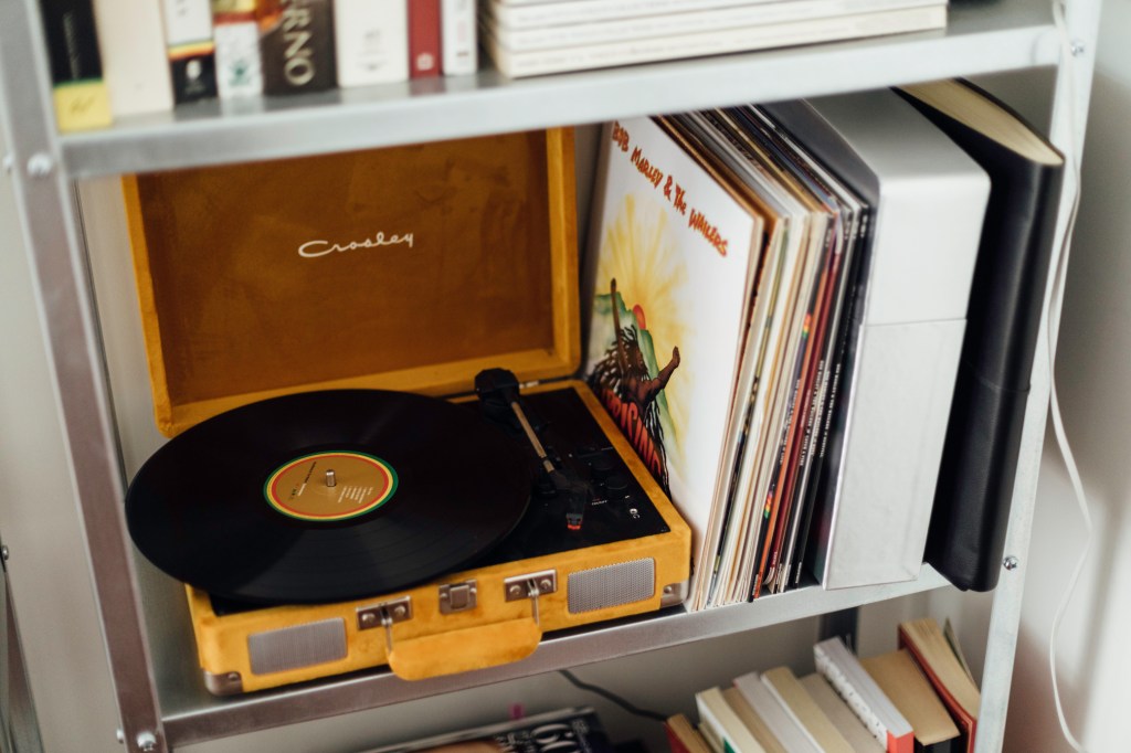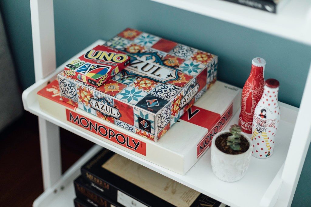 La mesa del comedor es en realidad una mesa que su mamá le mandó a fabricar para que pueda hacer patronaje cuando estudiaba Diseño. En el librero están las ediciones de las revistas Vogue en las que trabajó, también están los libros y discos de Bob Marley de Jose, y la fotografía de una bailarina de ballet que es muy especial porque la tomó Jose Luis Guiulfo, padre de Romina. Tienen una lámpara que perteneció a la casa de una pareja de refugiados europeos de la Segunda Guerra Mundial; tienen también las Cards Against Humanity, un juego que ilustra muy bien sus personalidades sarcásticas. Se han quedado con un caballito de madera, que fue lo primero que Jose compró para aquel depa “de soltero”, y juntos han comprado su primera obra de arte: un cuadro de Abel Bentín. “De alguna manera hemos logrado que aquí entre su mundo y mi mundo”, reflexiona Romina.