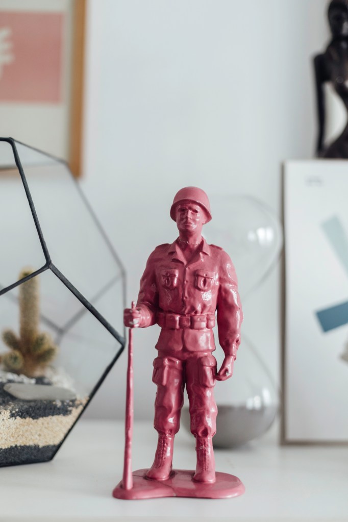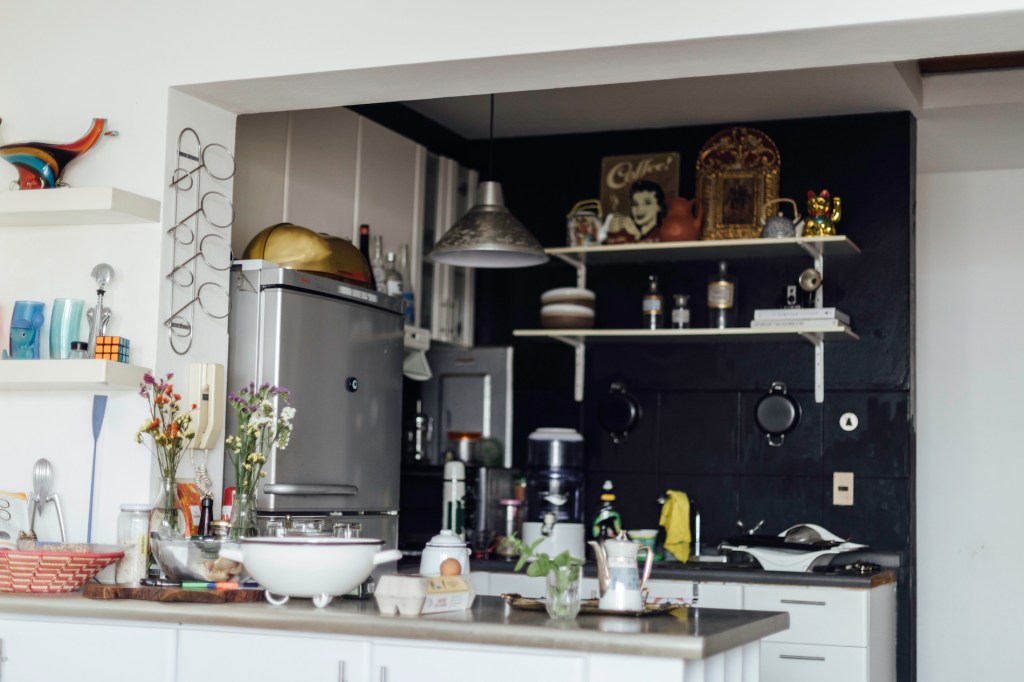 El depa está lleno de cosas que ha encontrado en el camino o que llegaron a ella de distinta manera. Sus repisas cargan montículos de libros y de revistas, juguetes antiguos, botellas, tacitas, cerámicas, un casco de la Segunda Guerra Mundial. Esos objetos son la expresión de su curiosidad, la materialización de viajes, de experiencias, de un ojo que fue afinándose y una estética que goza con la mezcla, la fusión y también con el caos. Patty acaba de deshacerse de buena parte de sus cosas, las ha regalado: aún así, los ambientes están repletos porque le gustan los objetos y los necesita cerca.