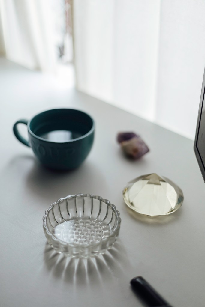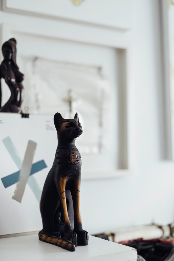 Hace años un amigo la llamó y le dijo: “Basta de juerga, necesitas cuidar algo. ¿No has pensado en tener un gatito?”. Cuando recién adoptó a Misha sentía muchos nervios de esa cosita tan chiquita, tenía miedo de que se fuera a morir. Y se volvió loca por ella. No quería salir. La gente le preguntaba si iría a tal o cual fiesta y ella respondía que no, que se quedaba en casa con su gata. Años después llegó Chorizo, otra gatita, más tímida que Misha, que es una reina. Ambas toman agua en tazas de cerámica y en posavasos de cuarzo: Patty la llama su agüita energética.