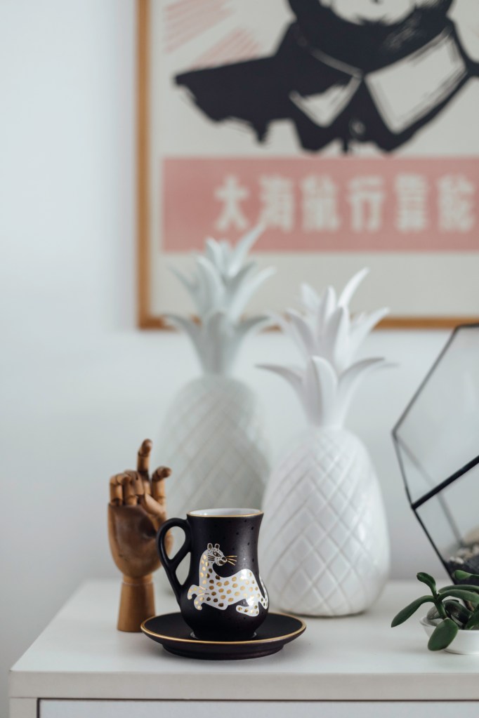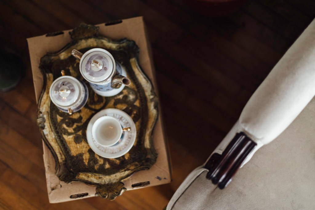 En su caso, mudarse no solo implicaba irse: tenían que deshacerse de cosas. Con tres meses para dejar la casa, organizaron una gran venta de garaje y paralelamente colocaban muebles en casas de amigos que llegaban y se los llevaban. “Todo era tan rápido que no te podías despedir de nada. Yo pensaba: ‘¿Cómo voy a vender el horno de arcilla de mi mamá?, pero a la vez me decía: ‘¿Dónde voy a meter el horno de arcilla de mi mamá?’. Mi mami mandó a hacer todos los muebles de mi casa. Me acuerdo de la mesa de comedor, grande, de madera, con una piña tallada hermosa que ella misma dibujó para que el ebanista la hiciera; cada vez que cobraba su sueldo le dejaba una plata para que la avanzara, yo la acompañaba. Hizo sus muebles con amor y paciencia pensando que le iban a durar un montón de años. Y ella no se los pudo llevar, y yo tampoco me los pude llevar. La mesa se la vendí a los papás de una amiga, y no he vuelto a verla. Pero me quedé con una vitrina llena de sus tazas, vasos y platos. Vendí todo lo demás, pero cerré esa vitrina. Está aquí, conmigo”.
