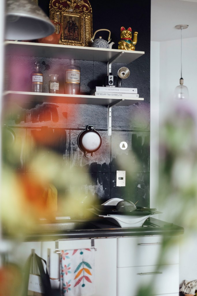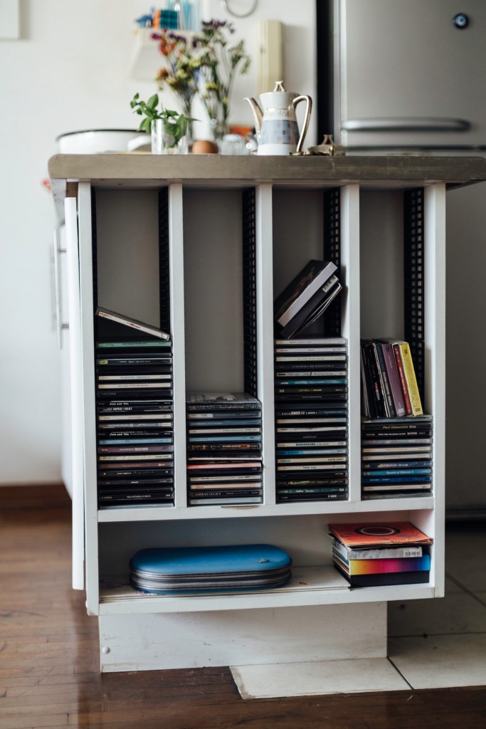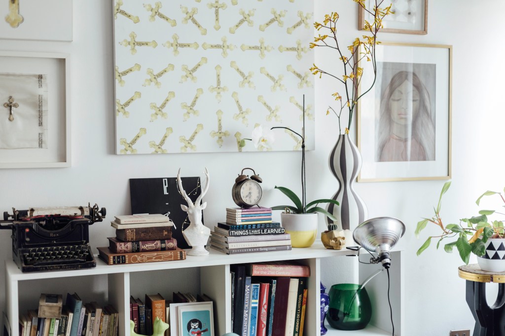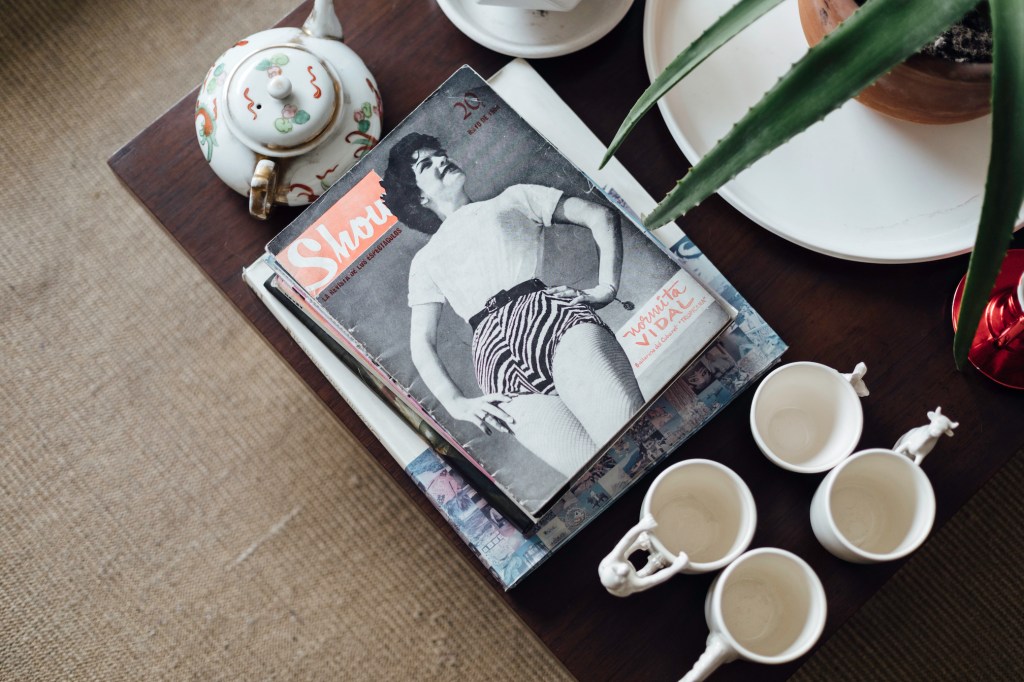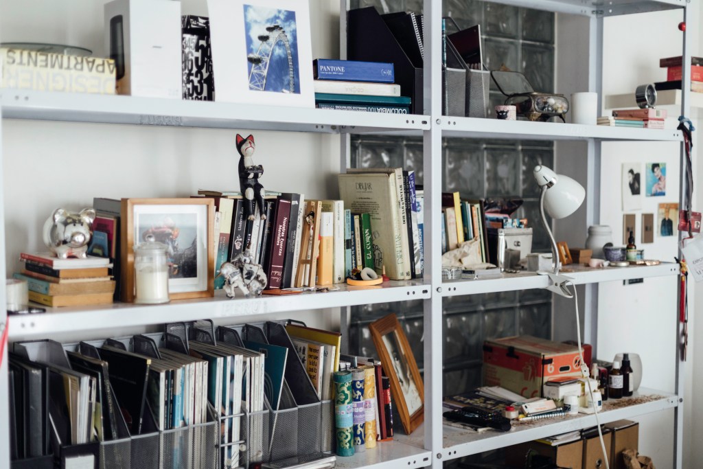 “Yo no quiero un mueble de roble o de cedro que me dure 100 años. Si tengo algo que se oxida lo cambio, o lo dejo hasta que encuentre algo que quiero. Prefiero renovar cosas que otros han usado y desechado, arreglarlas y darles una segunda vida: me encantan las cosas que tienen un recorrido y más significado. También mando a hacer algunas piezas: como el archivador de mi cuarto. Es que necesitaba espacio, mira, está lleno de cosas: aquí están mis libros sobre reiki; aquí guardo rollos de películas, porque hacer fotos analógicas es uno de mis hobbies. Y este cajón está lleno de juguetes sexuales. Y sé dónde encontrar cada cosa. Pero la verdad de la milanesa es que todo el rato quiero deshacer y rehacer todo”.