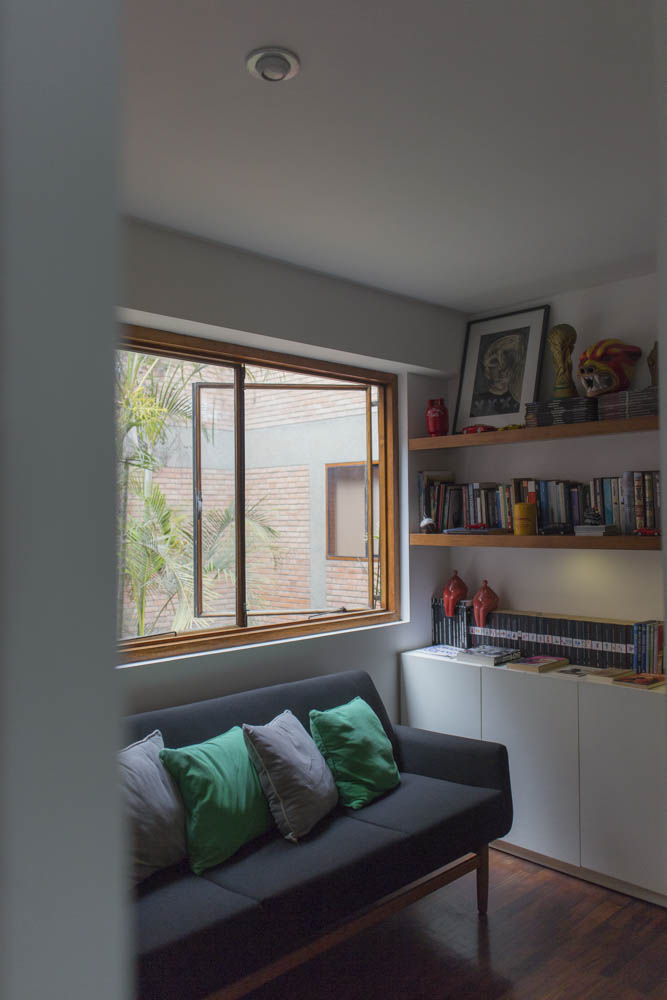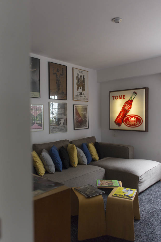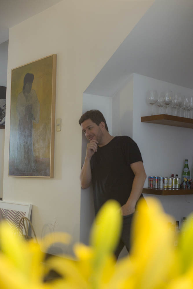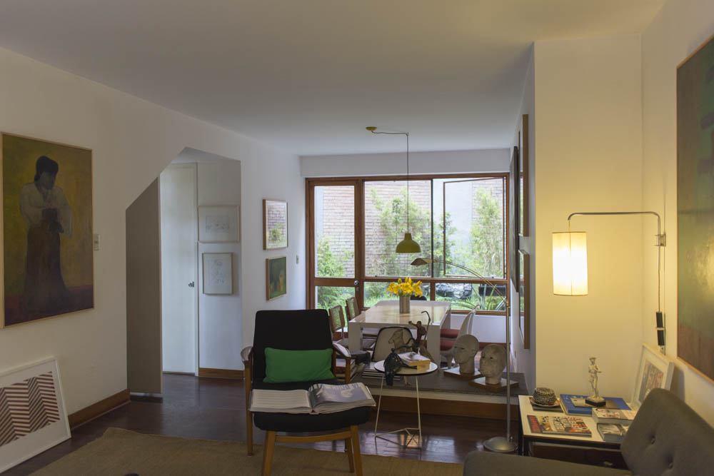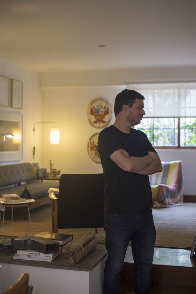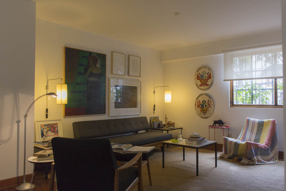 Casi al mismo tiempo de empezar su nuevo trabajo, llegó a este dúplex en Miraflores. Es un hermoso edificio de ladrillos de comienzos de los ochenta, de los arquitectos peruanos Cooper, Graña y Nicolini. Una pareja de amigos dejaba este departamento. Sergio no tenía planeado mudarse: vivía en Reducto, muy cerca, y su sitio era pequeño pero bonito, solo le molestaba el ruido. Igual, contactó a la dueña por curiosidad, se tomaron un café, se cayeron muy bien, y terminó firmando un contrato de alquiler.