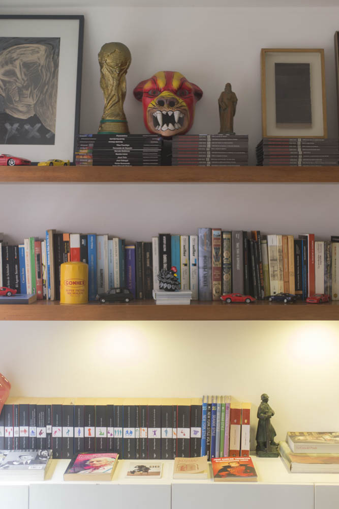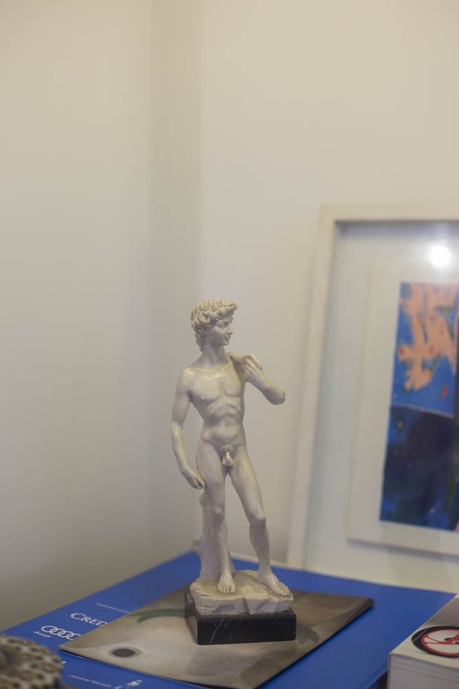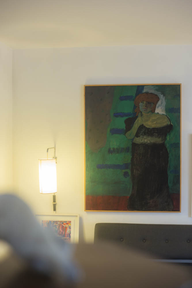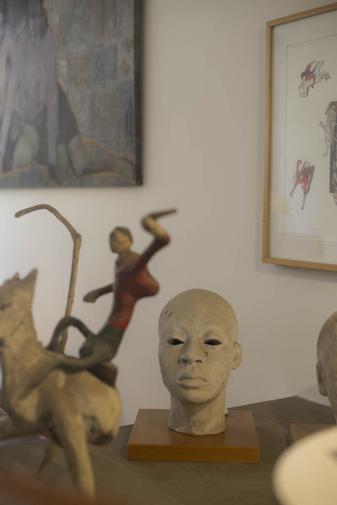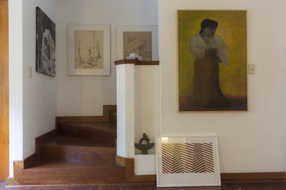 Y si los muebles tan curados hacen mucho por definir la atmósfera de su depa, el arte termina de darle forma. Sergio es amigo de muchos artistas, curadores y fotógrafos. “Eso que conoces a una persona y luego conoces a un montón”, explica. Tiene muchas piezas de su tío Bruno, incluso algunas que él tenía casi perdidas en el taller y que Sergio rescató; también tiene obra de artistas amigos de Bruno, quienes le agarraron cariño y le regalaron cosas, como de Elda Di Malio, Moiko Yaker y Nader Barhumi. Pero muy pronto Sergio empezó su propia colección, compraba arte cuando ninguno de sus amigos lo hacía, y tiene pinturas, dibujos y grabados de artistas como Fernando Otero, Daphne Dougall y Mariella Agois. Además, tiene posters de exposiciones a las que fue, que guardó y luego mandó a enmarcar.