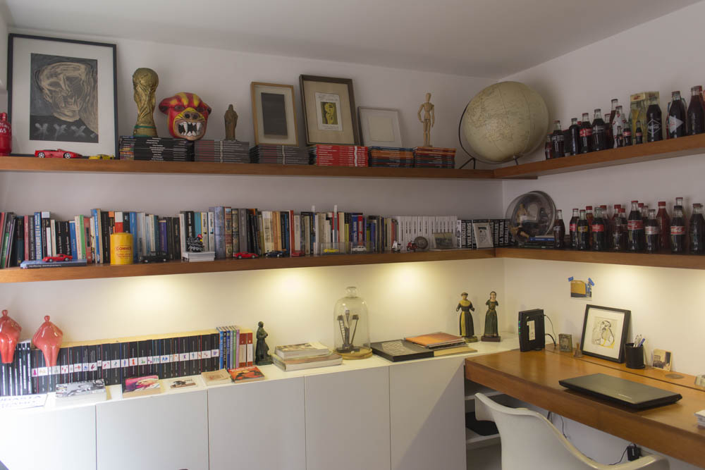 Por las mañanas trabaja en su oficina y por las tardes lo hace desde casa. Tiene un escritorio en la segunda planta, en el que además está parte de su colección de globos terráqueos y de botellas de vidrio de Coca Cola. Pero también trabaja en el comedor o en la sala, dependiendo del día. Trata de sacarle provecho a su casa. Y le encanta que lo visiten. Vive en un lugar creado a partir de sus intereses personales, que no duda en compartir. Él sabe la diferencia que pueden hacer.