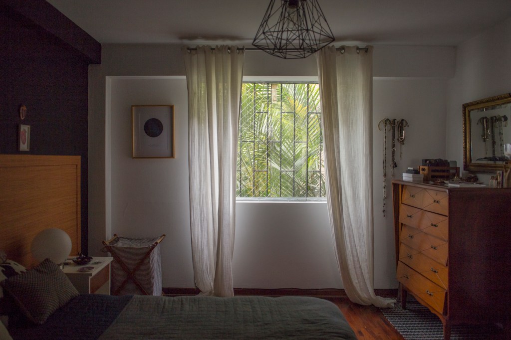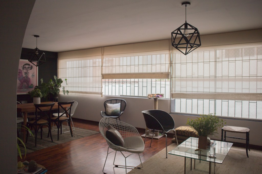 A Conrad le gustaron las ventanas grandes y que por ellas entre tanta luz. Agradece el importante retiro que hay con respecto a la calle, porque gracias a esa distancia no siente la bulla de los autos. Cuando vivían en la otra casa hubo un momento en que estaba casi deprimido por las voces desde la calle, las bocinas de los autos, las peleas entre vecinos… Tan poco espacio y tanto ruido. En este condominio, en cambio, la arquitectura retro genera una dinámica más amable, como de vecindario, y a Conrad le sirve un montón sentirte “visualmente tranquilo”.