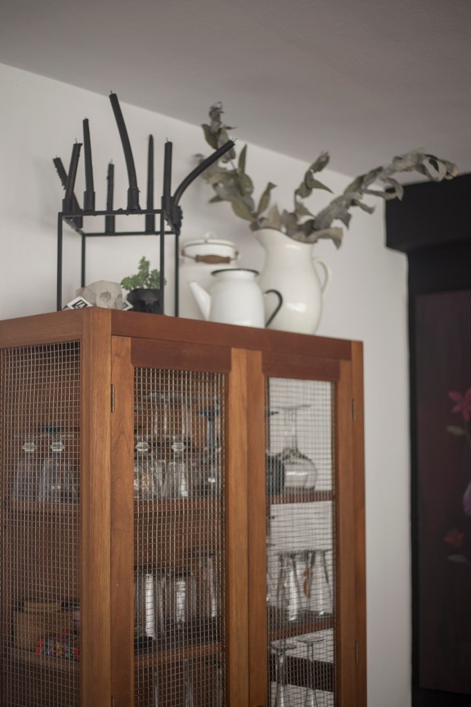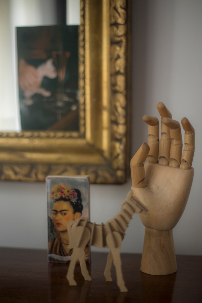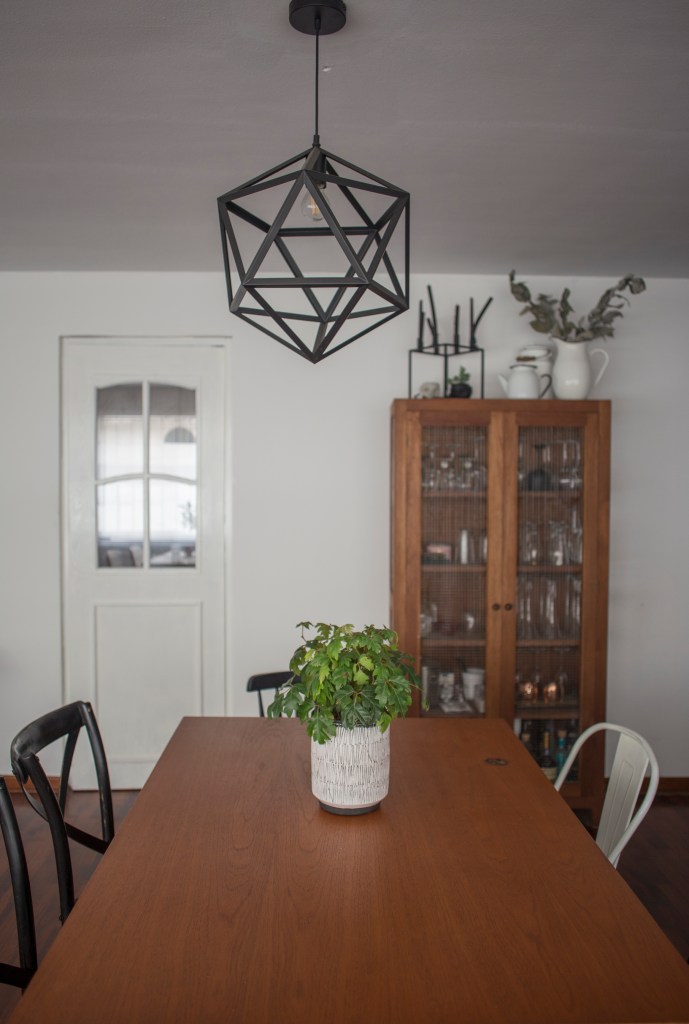 Han ido llegando más objetos, pero tampoco tantos. Los muebles de la sala son los mismos, solo que aquí pueden tener una alfombra y en la otra casa no, porque sentían que achicaba el ambiente. El comedor sí ha cambiado, porque el que tenían Conrad lo usaba para pintar, así que todo quedó manchado: hoy esa mesa sigue en el cuarto que usa como taller. Encontraron otra mesa en un remate de una casa antigua, el aparador lo mandaron a hacer, las sillas Tolix las compraron en una tienda de diseño y el resto de las sillas las consiguieron en una tienda por departamentos.