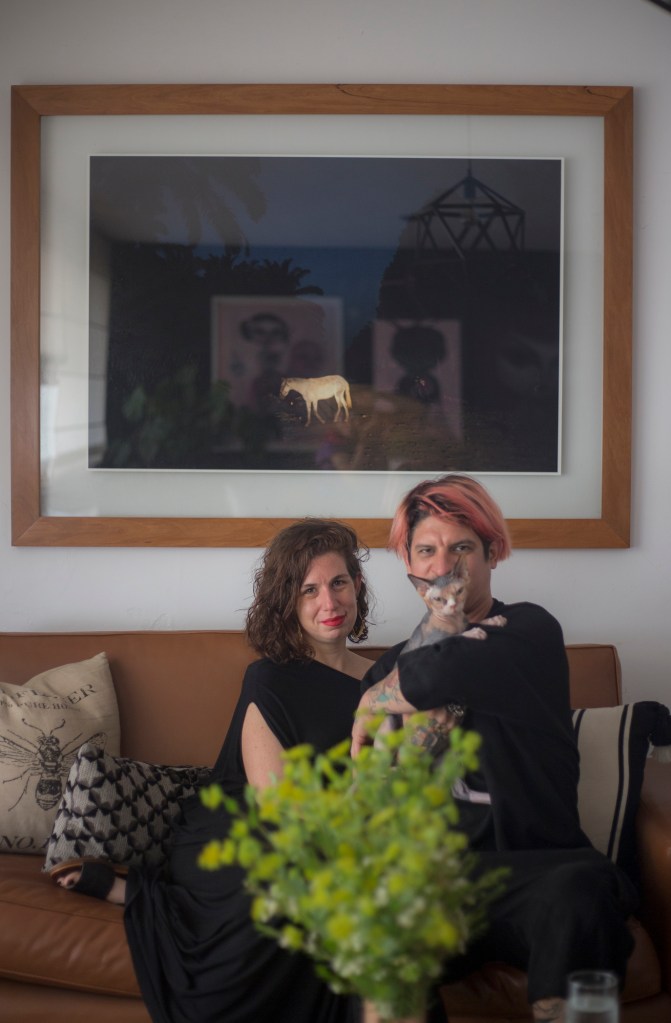 Cuando ambos están en casa, trabajando, es común que Conrad cocine y que almuercen tarde, sobre las cuatro. Otras veces piden comida por delivery porque les ganó el tiempo. Cada uno tiene su espacio y lo respetan, pero están constantemente interactuando, conversando, comentando algo de cuarto a cuarto. Después de doce años, Yasmin no se imagina otra manera de vivir: “Estoy acostumbrada a él, a su espacio, a su desorden. Y él está acostumbrado a mí y a escucharme todo el día hablando por teléfono”, se ríe. En casa, es la gata Violeta que se mete donde quiere, cuando quiere.