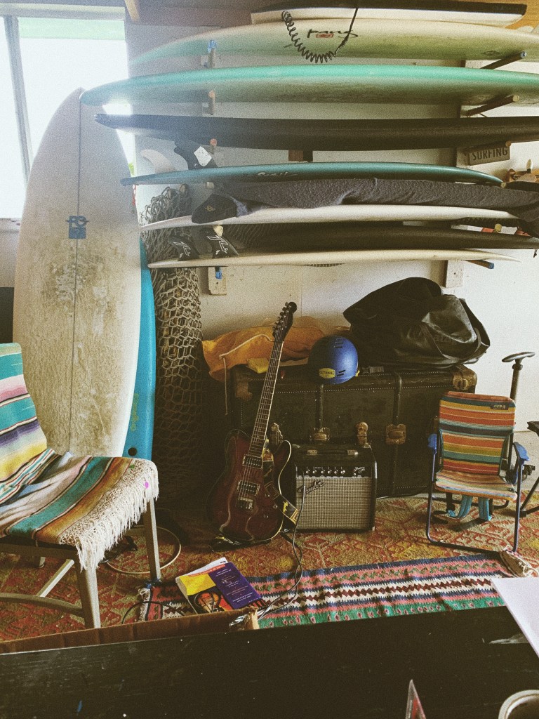 Conoció a John “Hub” Hubbard, diseñador de wetsuits. Cuando tenían un año de relación, él tuvo que mudarse por trabajo de Encinitas a Ventura. Daniella no quería dejar el lugar que consideraba su hogar, y le propuso seguir la relación a la distancia. De pronto, salió embarazada y, a la vez, le avisaron que iban a vender la casa en la que vivía. Todo de golpe. Así que decidieron que lo mejor sería que se mude a Ventura lo antes posible. Estaba terminando de empacar cuando se le rompió la fuente, el bebé se adelantó un mes. Ese ha sido uno de los cambios de vida más drásticos para Daniella. Salió de la clínica con su hijo Noah, prematuro, y llegó a una casa que nunca había visto, en una ciudad desconocida. “Fue bien fuerte”, recuerda. “Estaba en la casa todo el día porque no tenía chamba y no conocía a nadie”. Pero, entonces, empezó a concentrarse en ella y en su hijo, en la familia que se había formado, en su nuevo hogar. Empezó a conocer cada vez más su nueva casa, sus espacios, y a pensarlos en función a lo que necesitaba Noah y también a lo que le gustaba a ella. A su estilo.