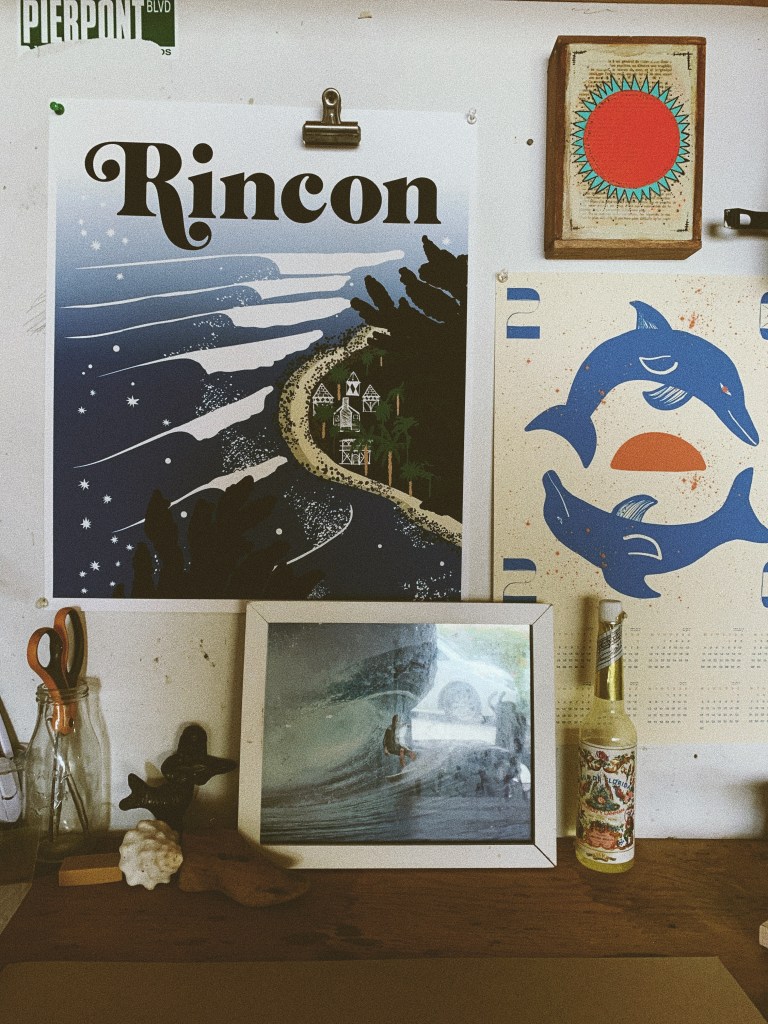 En el 2015 abrió una tienda online de pósters que ella misma diseña. No solo los diseña, sino que los imprime, corta, mete en un tubo y los envía, desde el taller que ha montado en el garaje de su casa. Los motivos de sus pósters son la playa, California, Lima, la nostalgia. Piensa en imágenes que le dejan una sensación positiva, afiches que a ella le gustaría tener en su casa colgadas. De hecho, buena parte del arte que tiene en sus paredes son piezas pintadas o diseñadas por ella.