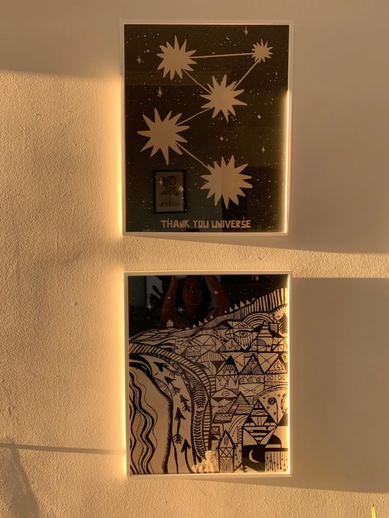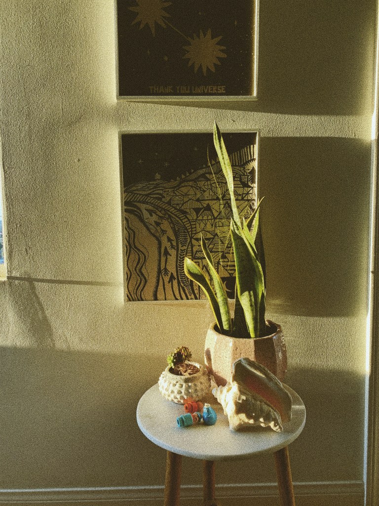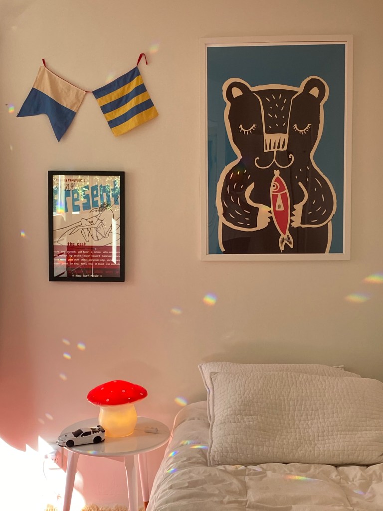 “El interés por la decoración fue creciendo en mí poco a poco. Al comienzo no tenía mucha plata para invertir en muebles, pero fui encontrando cosas aquí y allá, empecé a investigar sobre plantas… Ahora me importa más la decoración y también tengo mejor ojo que antes. Cuando nació mi hijo comencé a crear arte para su cuarto. Quizás porque cuando era chica siempre quise tener un cuarto lindo y nunca lo tuve, es que era tan importante para mí que mis hijos tengan un dormitorio que sea mágico. Una vez que me di cuenta de que podía hacerlo, que tenía la capacidad artística para hacerlo, compré una impresora profesional y me lancé con un negocio propio”.