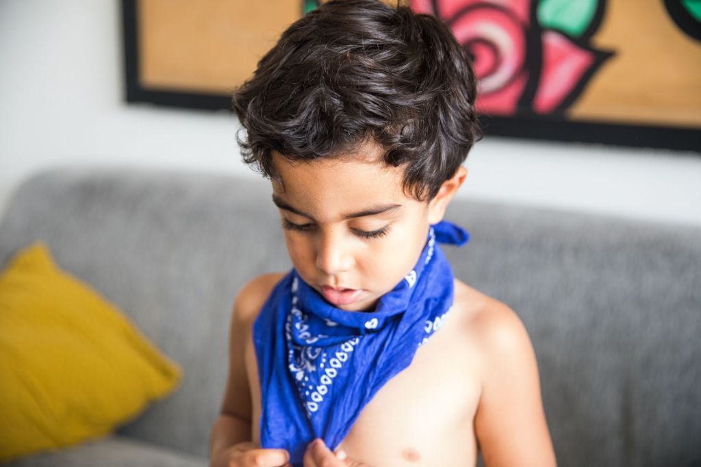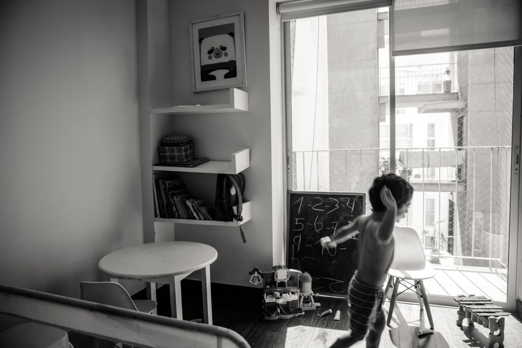 Adriana es fotógrafa y es su principal trabajo, pero es muchas cosas más. Tiene una cuenta de Instagram, Atipicalife, en la que comparte su afición por la comida saludable y su experiencia como mamá, sobre todo como mamá de un niño neuroatípico. Galo es autista, y la cuarentena ha sido especialmente difícil para él. “Cada niño con autismo es un mundo, pero digamos que, hablando desde una mirada en común, necesitan mucho los espacios libres, porque se frustran con mayor facilidad”, explica Adri. “A Mariano le digo que no puede salir y me entiende. Empieza a jugar solo, se inventa un juego. Yo no conocía esa capacidad de imaginar de los niños porque no la gocé con Galo. Él no tiene imaginación, es más concreto. Yo tendría que dibujarle que no puede salir para que lo entienda. Felizmente hace un par de semanas el gobierno ya dio permiso para que los niños con autismo puedan salir a caminar 15 minutos alrededor de la cuadra”. Galo sale con su pañuelo azul en el cuello, como señal de su condición. Aún así, hay quienes critican en voz alta, desde sus ventanas, que estén en la calle. Demostrando que a todos, chicos y grandes, nos viene bien una lección de tolerancia.