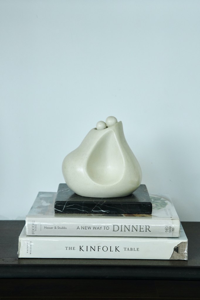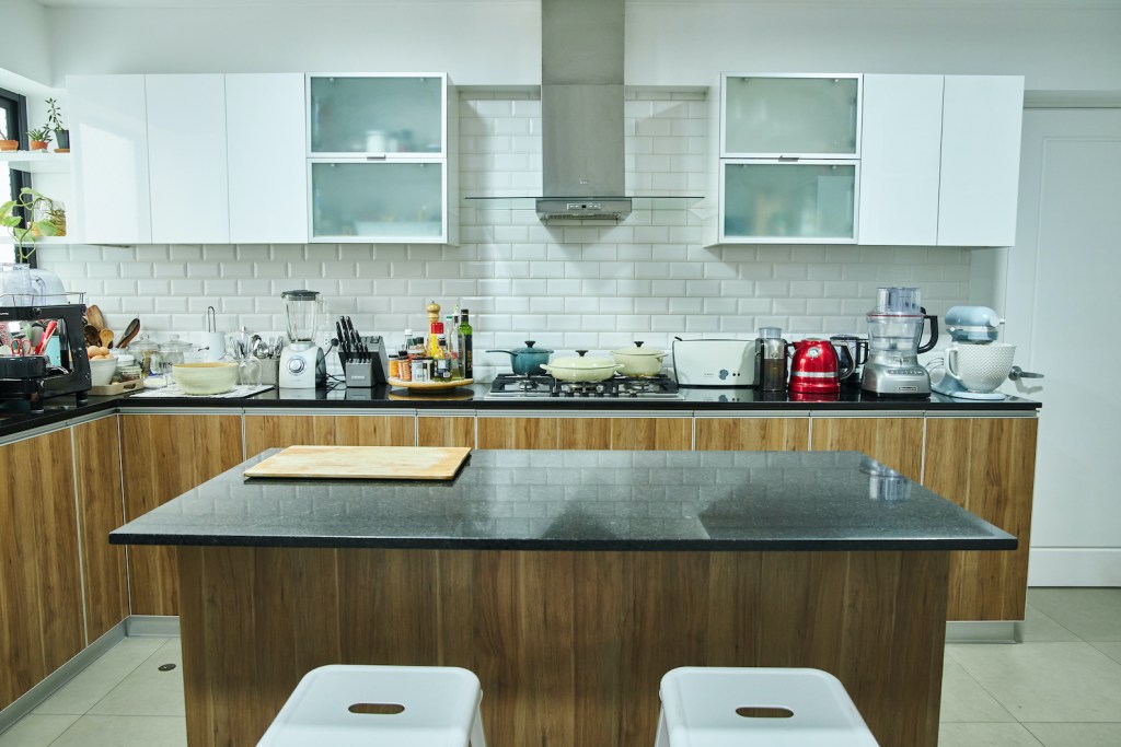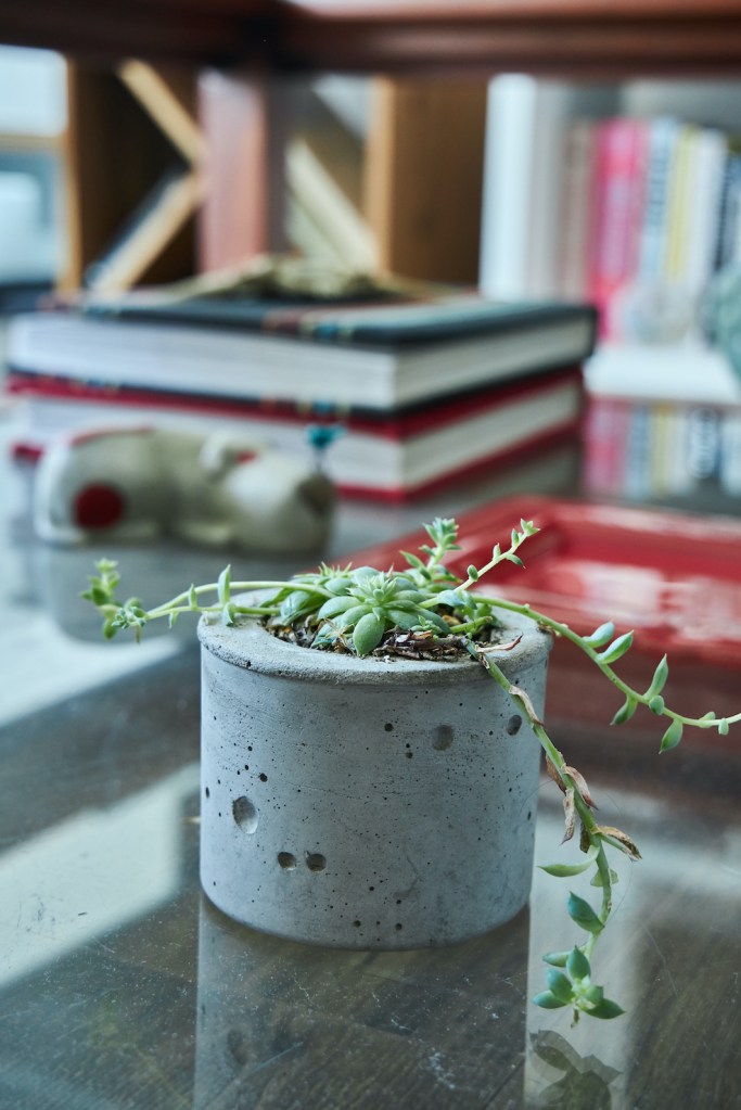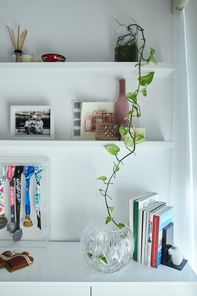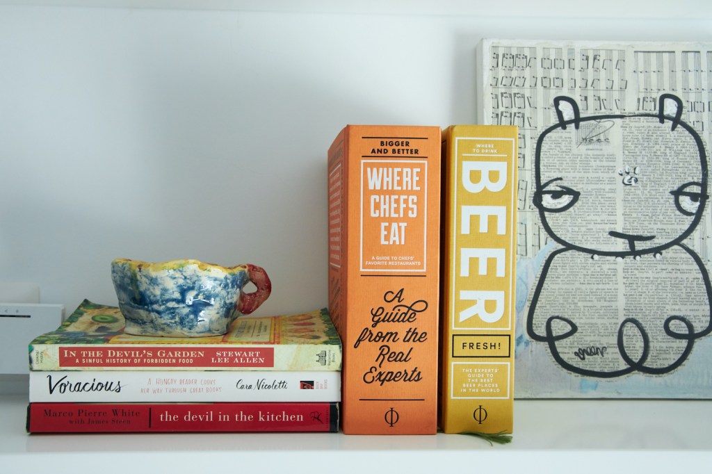 En sus anteriores departamentos tuvo que instalar su estudio fotográfico adaptando el comedor o ganando espacio a la sala. Pero antes de mudarse al depa nuevo ya había trasladado el estudio a un espacio chiquito que comparte con la diseñadora Paloma Nieri. Ahí tiene una cocina –que ella misma remodeló– en la que prepara los platos que luego fotografía. También guarda los cientos de piezas de las vajillas y los accesorios que usa para sus fotos, y que ocupaban demasiado espacio en su casa. Gran parte de esas piezas, así como sus libros de cocina, se los trajo desde España. La experiencia acumulada valía más que todos esos kilos extra que tuvieron que pagar al momento de volver.
