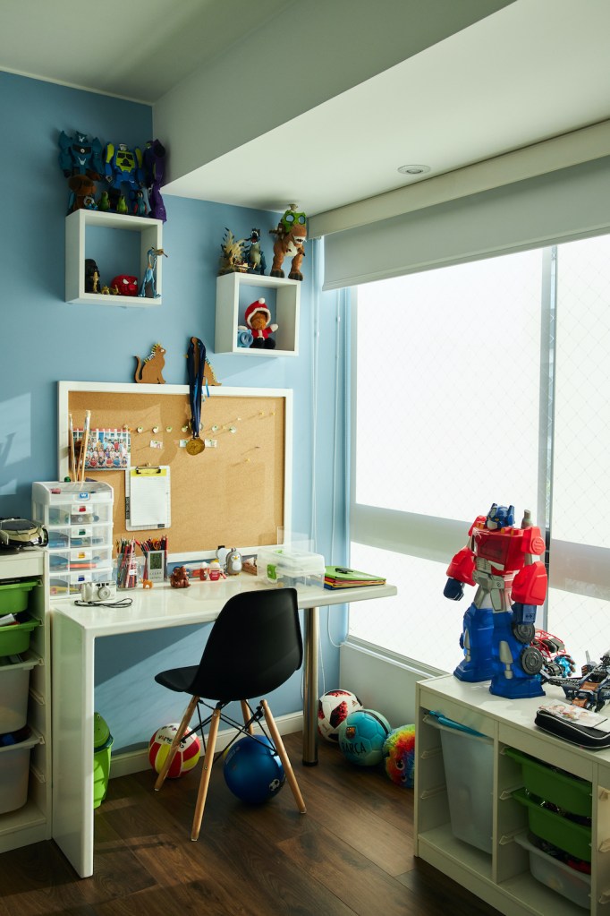Regresaron a Lima en 2012. Cayetana estaba por cumplir los 2 años y Jimena estaba embarazada de cinco meses de Sebastián. El primer año lo pasaron en un departamento que estaba abajo del depa de sus papás: las mudanzas emocionales siempre toman más tiempo. Luego alquilaron el departamento del cuñado de Jimena, y ahí vivieron hasta que decidieron que era hora de buscar algo propio. Había una casa en venta por la que siempre pasaban de camino al colegio: vieron cómo la tumbaron, y cómo fue apareciendo un edificio en su lugar. Les gustaba. Jimena lo fue a ver primero; Alejandro le dijo, riéndose: “No elijas por la cocina”. Jimena también se rió, pero lo que ella buscaba era luz y dormitorios espaciosos para sus hijos. Era el último flat que quedaba y se enamoró.