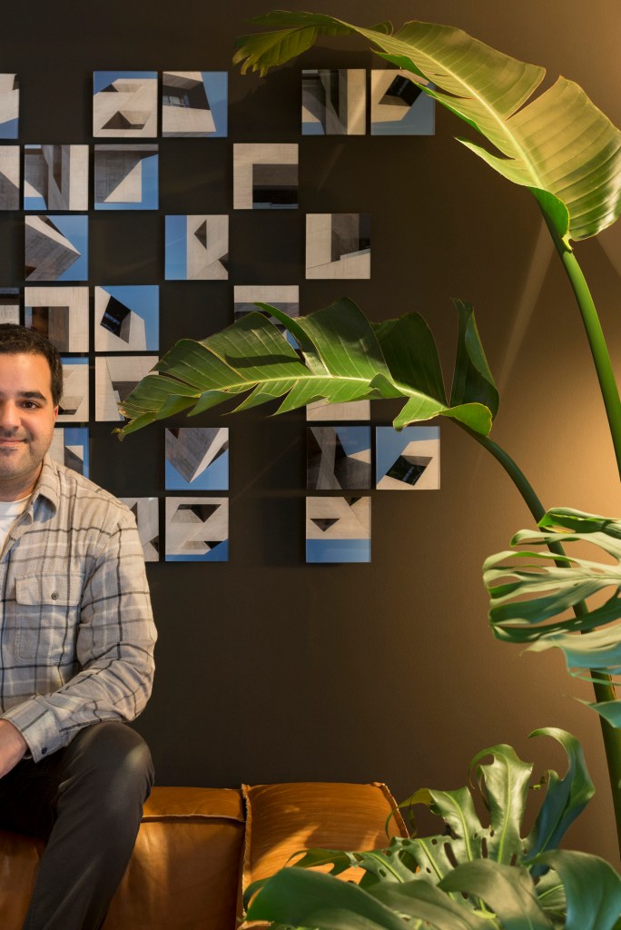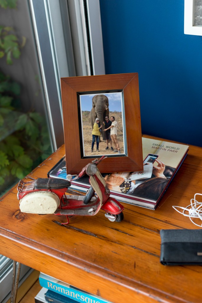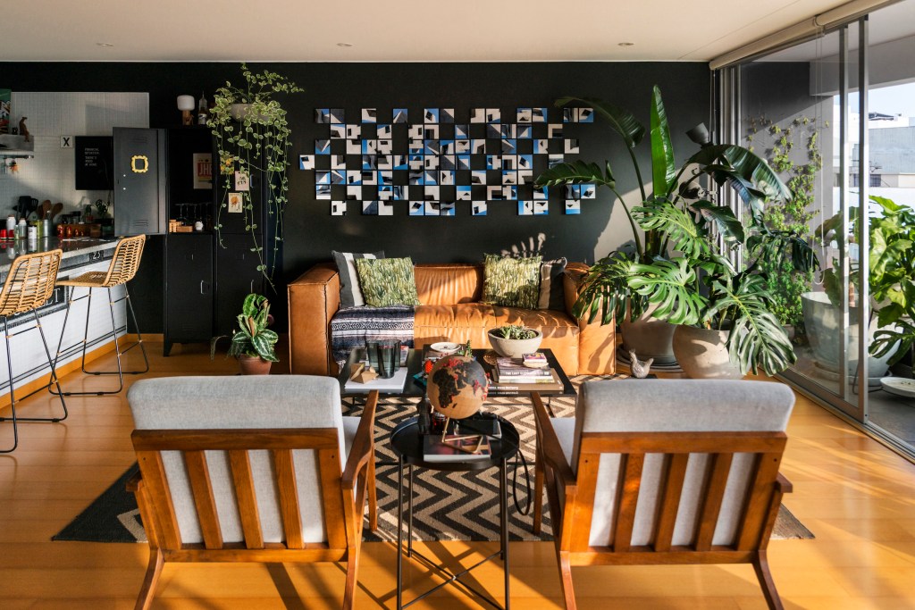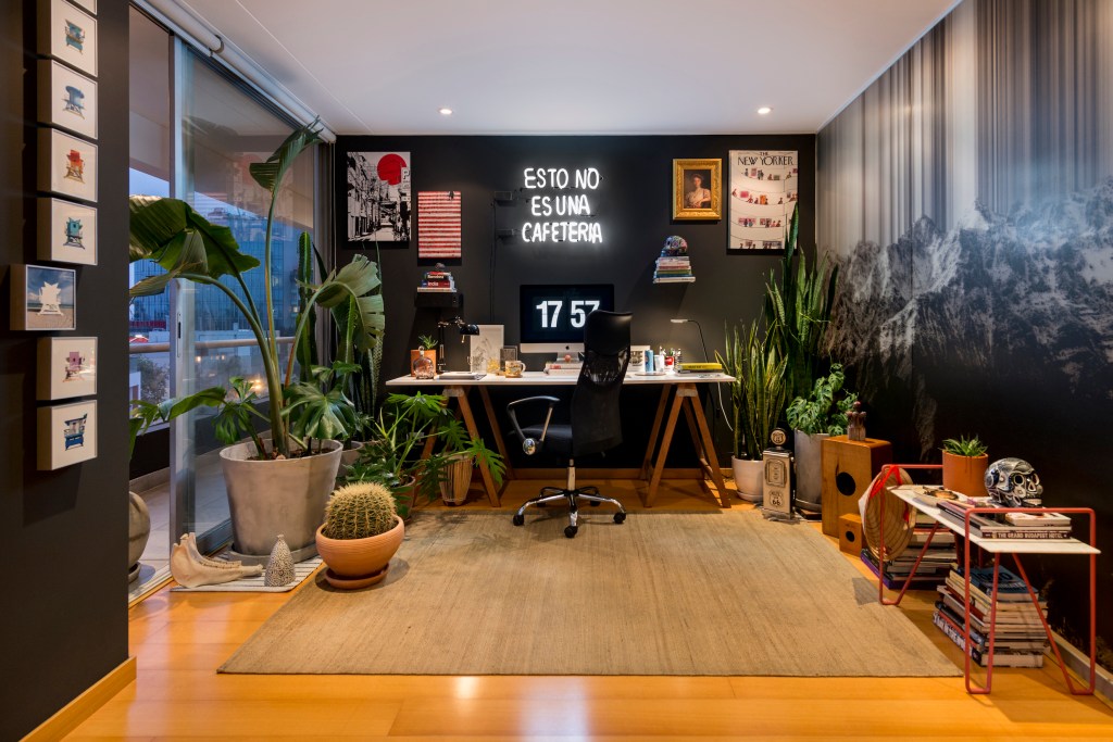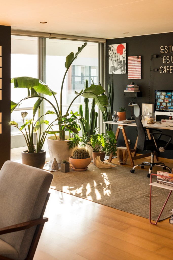 “Mi trabajo en el día a día es estar afuera, haciendo fotos, y luego pasarme la tarde editando el material. Antes alquilaba una oficina a medias con un amigo, pero luego pensé que me pasaba el día en la calle, y luego metido en otro lado, y no estaba nunca en mi casa. Así que monté mi oficina aquí porque quería estar en un lugar que me guste, me inspire y en el que me sienta cómodo. Quería un sitio al que me gusta llegar. Yo creo que la forma en que vivo mi depa sí influye en mi trabajo porque cuando voy a otros espacios los veo con otros ojos, trato de encontrar en los detalles la personalidad de las personas. Y creo que un lugar te estimula de muchas maneras. A mí, por ejemplo, no me gusta prender las luces del techo sino solo las lámparas; tengo un playlist que pongo cuando viene gente, porque hay un mood que le quiero dar al depa. Me gusta prender palo santo, y que eso se mezcle con el olor de las plantas… Un espacio no es solo para que lo veas, es también para que lo huelas, lo escuches y lo sientas”.