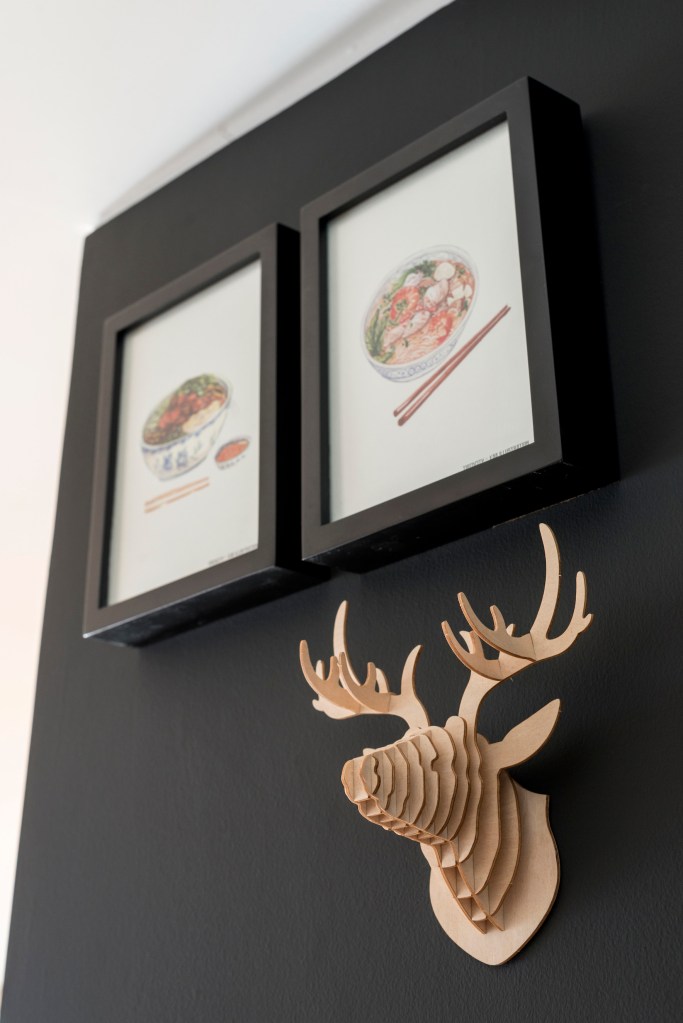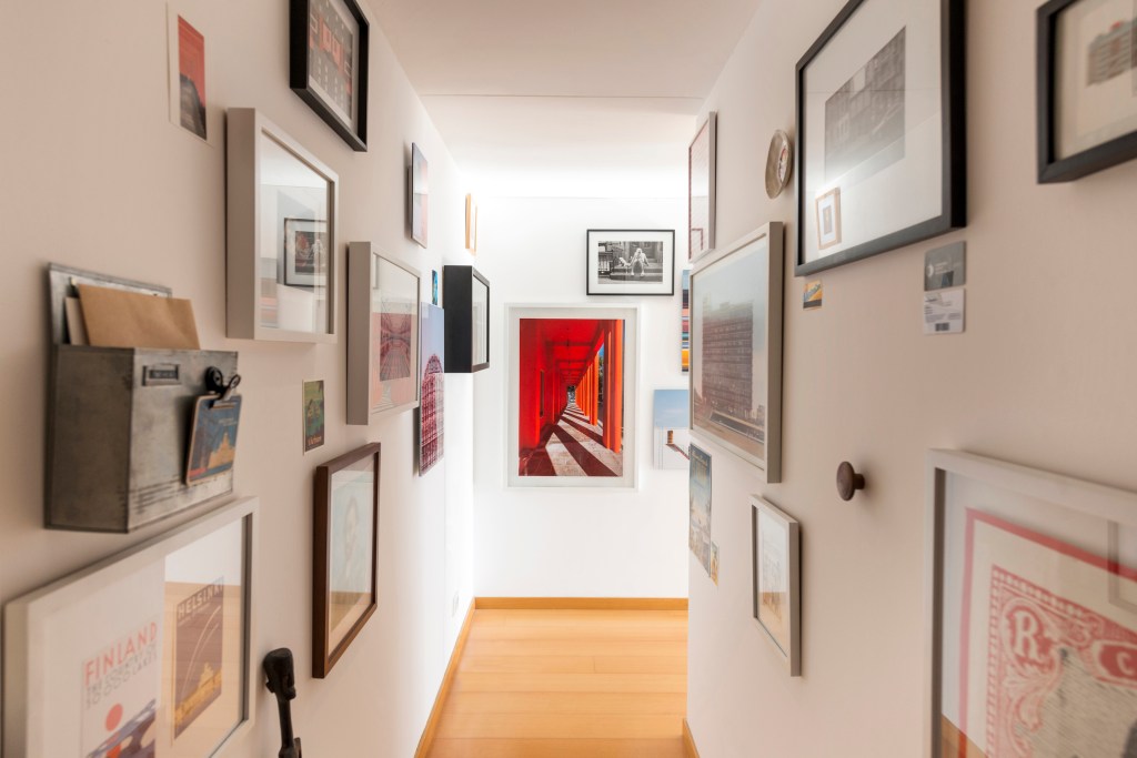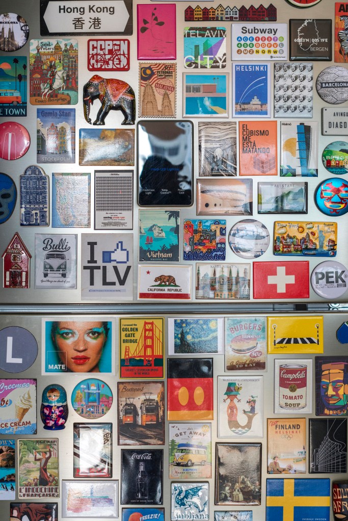 Estaba de viaje por los países nórdicos cuando su contrato empezó a correr. Ya desde entonces pensaba qué quería hacer con su depa. Había dibujado un plano para colgar sus piezas de arte, sus prints y fotos. Aprovechó para comprar varias cosas: no fueron cosas caras, la mayoría son objetos pequeños, pero diferentes a los que puede encontrar en Lima. Por ejemplo, se fue a Ikea y salió hasta con cubiertos. En general, cada vez que ha podido viajar ha regresado con libros, pósters y magnetos para el refrigerador, siempre pensando en buscarles un lugar en su casa. En este depa, la entrada es un pequeño pasadizo cubierto por fotos, postales y entradas de museos: la idea de Renzo es que sea una especie de galería de sus experiencias e intereses. Los objetos ni siquiera tienen que ser de diseño, pueden ser juguetes, o cosas simples y utilitarias. Cuando se sienta en su sala mira una de las botellas de Coca-Cola que trajo de Japón, y ver las grafías japonesas le hacen acordar tan especial viaje. Quiere que su departamento lo refleje.