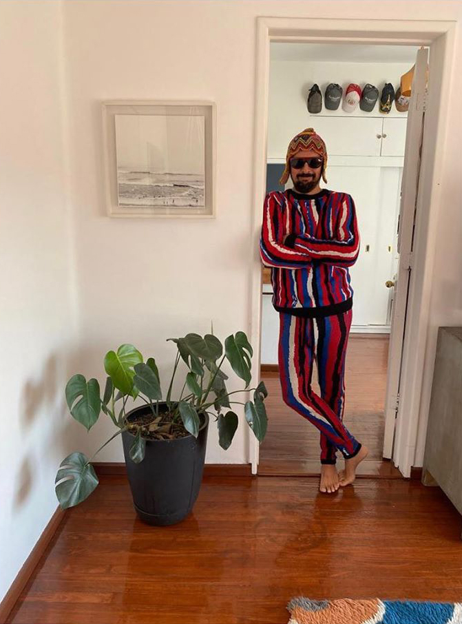 Estas semanas ha trabajado desde casa. Ha filmado un video sobre la marca con ayuda de Santiago, y en lugar de hacer fotos con modelos decidió probarse ella misma su última colección para tener material que subir a redes. Su equipo quería que haga TikToks, “pero como no entendí un pepino de cómo funcionaba, me dijeron bueno no importa, tómate fotos”, se ríe Sandra. El vestidor es amplio y ha podido colgar sus colecciones de sombreros y accesorios que en otros depas se guardaban en cajones. Estas semanas ha sido como jugar nuevamente a vestirse frente a los espejos del atelier de su abuela. Y la propia diseñadora ha descubierto nuevas formas de combinar sus piezas. Nuevas formas de seguir expresándose, porque la libertad también es un estado mental que, en el caso de Sandra, se siente como una explosión de color.