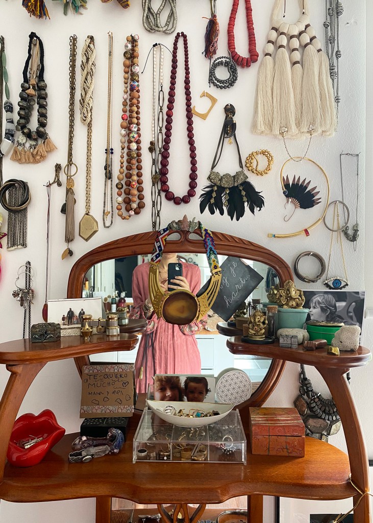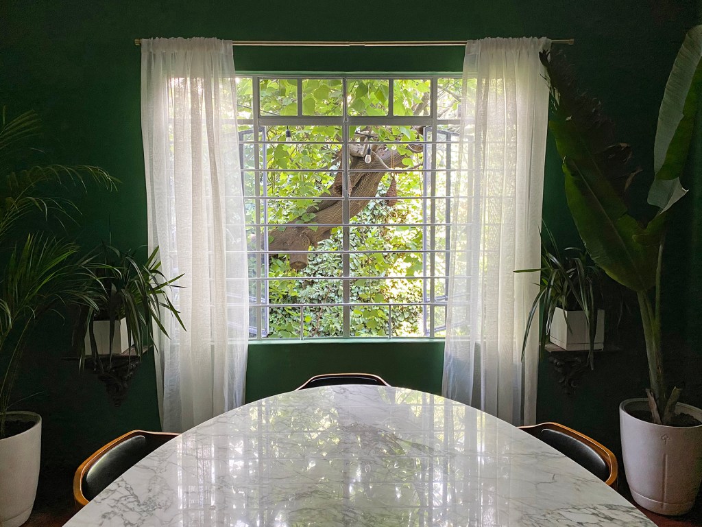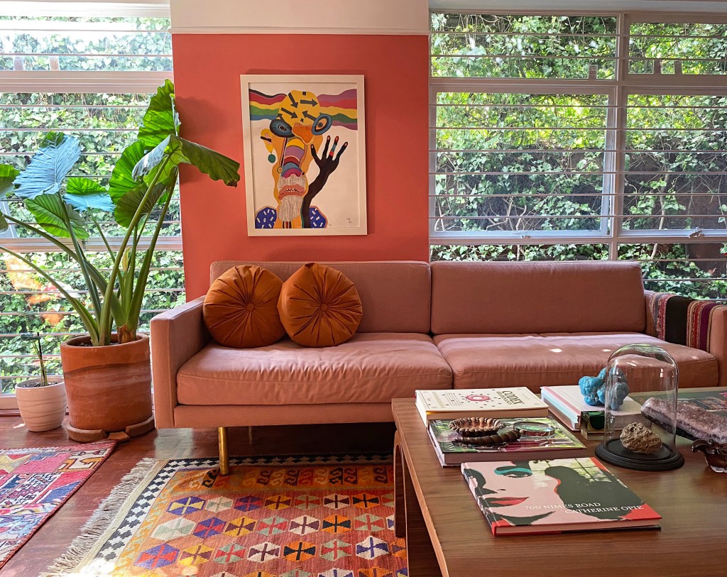 “La cuarentena en México ha sido sugerida, pero con mi familia y mi oficina la hemos hecho rigurosa. Y me he hallado aquí, en la casa. Decorarla ha sido un proceso más largo de lo que yo había querido, porque yo quería tronar los dedos y que todo esté fantástico, y no ha sido así. La hemos ido armando según como hemos podido económicamente y también de acuerdo a lo que nos hemos encontrado. No es cuestión de ir a una tienda y ahí comprar todo, porque nos interesan los objetos que nos vayan hablando. Hemos querido darle calor a través de colores y mezclas, y mira: llegado este momento la he visto bastante completa. Y me siento afortunada y agradecida. Me encuentro pensando que es una maravilla, una suerte haber encontrado esta casita”.