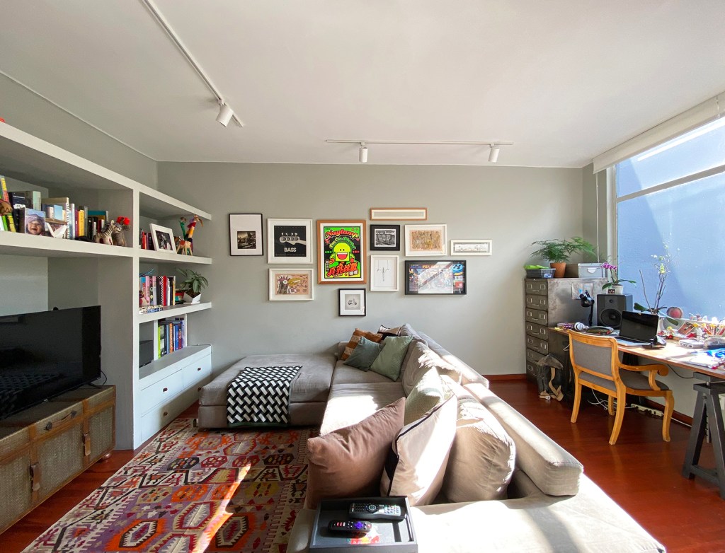 Ya con Luca (hoy de 6) y Nina (de 4), estiraron el depa lo más que pudieron: era un edificio lindo de los años sesenta, pero no tenía ascensor, ni lavandería, y cada vez les faltaba más espacio. A Sandra le costó irse de Polanzo porque no quería perder ese estilo de vida, pero un poco más allá, en colonia Virreyes, a pocas cuadras del bosque de Chapultepec, encontraron una casita antigua. La construcción de los años cincuenta estaba muy maltratada, pero la zona es “céntrica y bendecida”, dice Sandra: “tienes un poquito de todo lo que al menos para nosotros es importante, comercios, barrio. No nos podríamos ir a un suburbio nunca”. Vieron la casa «con ojos de amor» y con ganas de remodelarla de a pocos.