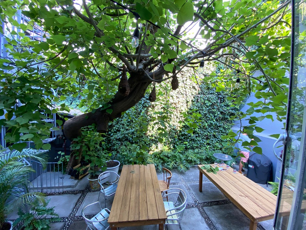 Sandra considera mucho lo que Luca y Nina quieren para sus espacios. La cuarentena le ha hecho notar que es momento de actualizar sus habitaciones y hacerlas más de niños y no tan de bebés. Le encanta ver cómo juegan y las decisiones que toman: de pronto deciden mudarse los dos a un mismo cuarto y van mudando y organizando sus cosas. Salen y regresan del patio y juegan bajo la sombra del maravilloso árbol. Nina es muy sensible y no podía dormir bien hasta que no probaron acomodando su cama de distintas maneras… Y es que la casa es determinante en las dinámicas de la familia; Sandra no sabía cuánto hasta que empezó la cuarentena y, sin poder salir, se vio absolutamente reflejada en este lugar.
