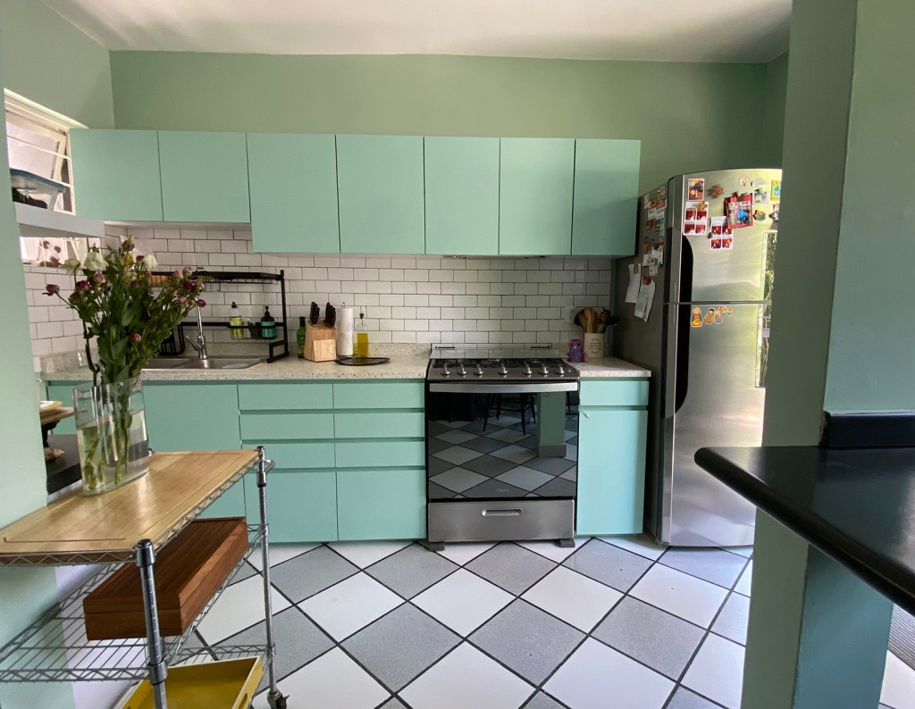 “No la íbamos a tirar y a hacer toda de nuevo, y la remodelación es un proyecto que aún no se ha podido realizar. Entonces hemos querido arreglarla de manera inteligente, con los recursos más básicos, para darle la vuelta a la casa y pimpearla. Por eso la hemos pensado en colores, la llenamos de plantas, y claro, haciéndola más divertida con la decoración. Yo soy la más aventada con los colores y también la que está mas pendiente, pero a Santiago le encanta opinar, es muy estético y con opiniones fijas de lo que le gusta y lo que no. Entonces a veces nos la hemos pasado en discusiones eternas tratando de convencernos el uno al otro”.