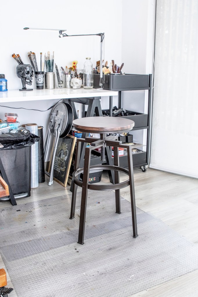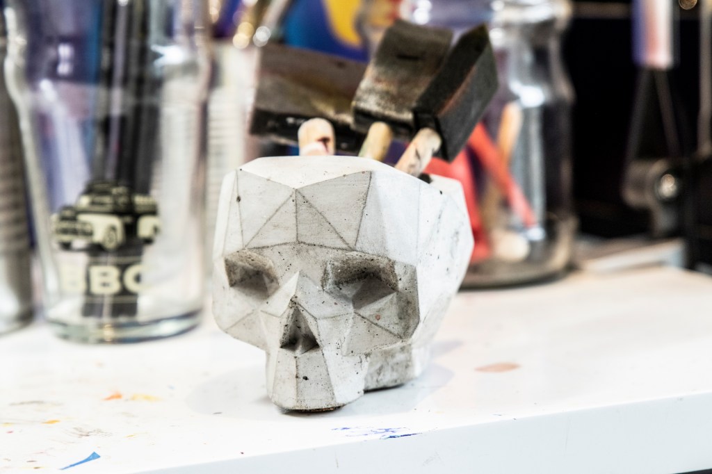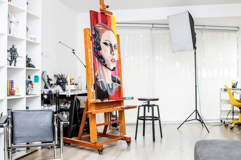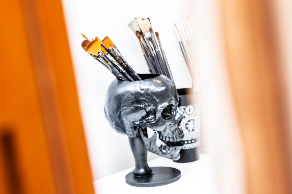 Con los años ha aprendido a organizarse y administrar bien sus tiempos y sus espacios. A pesar de que todo su trabajo puede hacerlo desde su depa, procura respetar sus horarios y darse tiempo para descansar. Le ha encontrado mucho provecho a tener su taller en casa, a tener todo a la mano, y se ha dado cuenta de eso sobre todo durante la cuarentena, cuando muchos otros artistas se han sentido limitados por no tener insumos y herramientas cerca. Edvo no quiere sentirse así nunca.