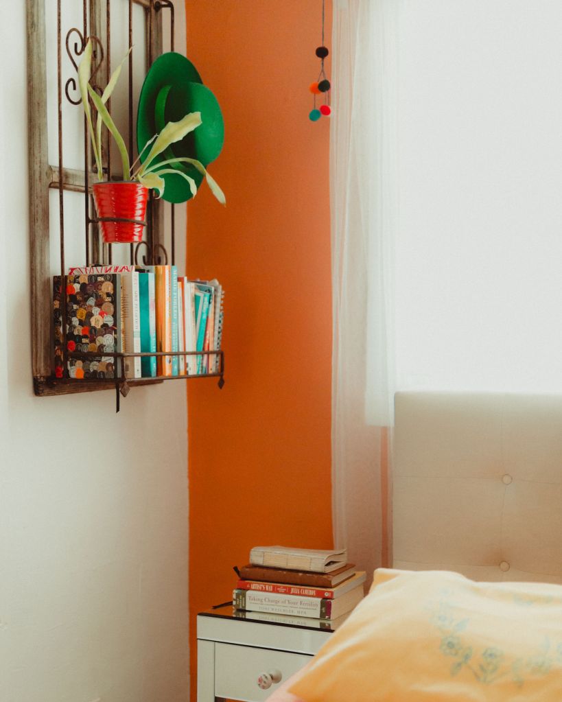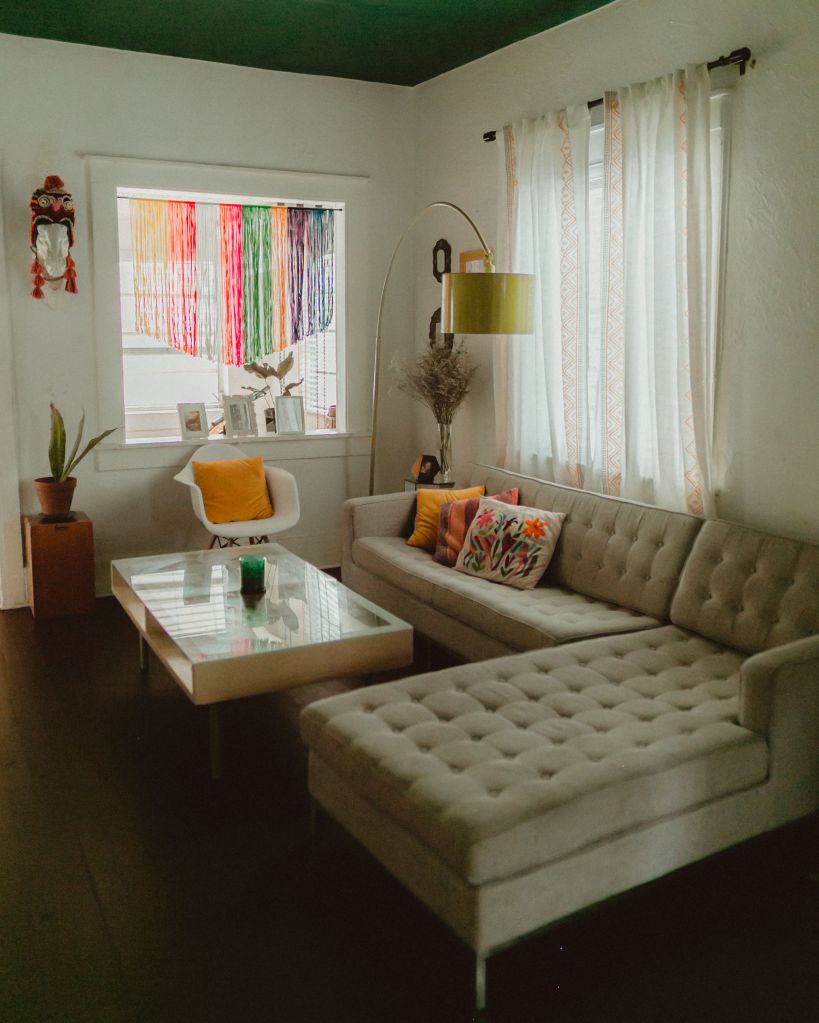 Todos le dicen que su casa tiene buena energía. A ella le sorprende gratamente que sus visitas entren, se saquen los zapatos y se recuesten en el sofá con confianza. Le da gusto que se sientan tan cómodos. Tiene algunas piezas vintage y otras de aires retro, como la mesa de centro de la sala que les dejó el dueño anterior, y que han llenado con libros e instrumentos musicales.