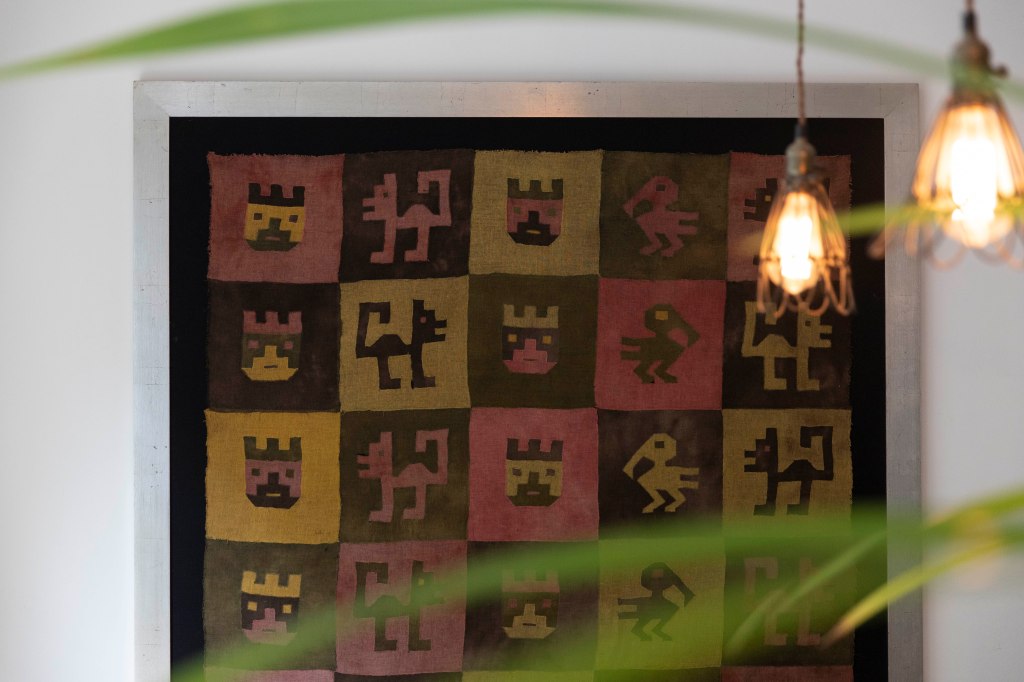 Solo tienen una pieza de arte suya: es la gran foto circular que está colgada en el ingreso. Es parte de la serie “Perspectivas planetarias” que Joshua tomó y Valeria editó. No tienen más en casa porque no les gusta “ser tan empalagosos” con sus propias fotos.