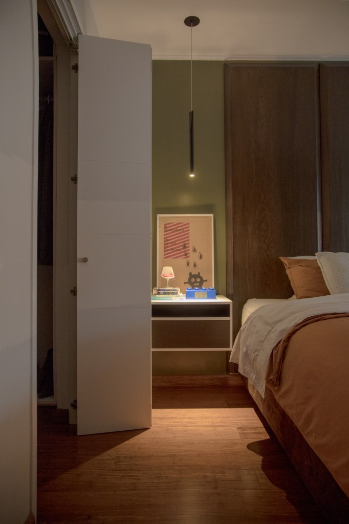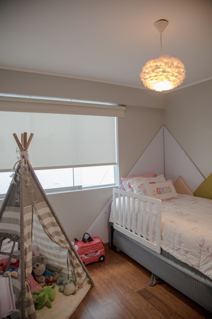 Completar su depa tenía varios retos adicionales. Por un lado, César hace home office desde hace tiempo, y es usual que reciba clientes en su casa. Tenía que lograr algo muy personal y cool, pero también que el potencial cliente entienda que todo puede adaptarse a otras necesidades y estilos. Pensando en esa flexibilidad, el arquitecto quiso que la otra mitad de su departamento, el área privada, sea más neutral, con una paleta más clásica, aunque sin perder interés. Además de su dormitorio y su oficina, en esta parte del depa está la sala de juegos y la habitación de su hija Agnes, que necesitaba un buen espacio para ella.