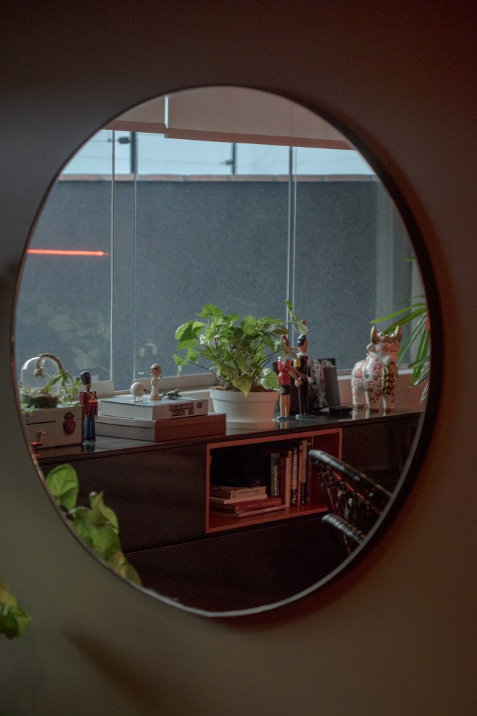 Ya es más de un año que vive solo en este depa. Durante todos esos meses, no necesitó más que su dormitorio, su oficina y la barra de la cocina. Lo visitaban amigos y no tenían dónde sentarse, cuenta riéndose. Ha sido durante la cuarentena que encontró el tiempo y el entusiasmo para remodelarlo. Hoy, puede decirse que este lugar responde totalmente a su estética y su nuevo estilo de vida; aún más, que es su mejor carta de presentación como arquitecto.