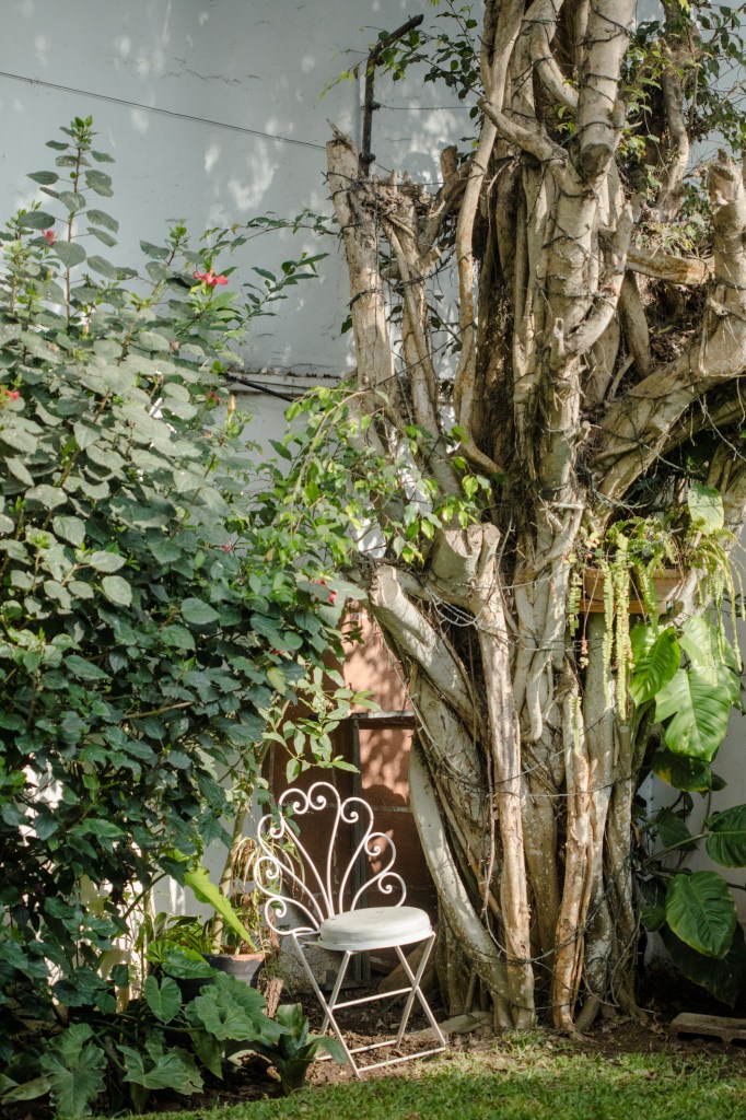 “Llegué a esta casa y me pareció un lienzo en blanco. Es de los años cuarenta y me encantaron sus molduras en los techos, el piso, los zócalos, su jardín. Me encantó que te pierdes un poco en la casa. Por supuesto, estaba fuera mi presupuesto, pero igual quise verla, le conté a mi papá y él me acompañó. Yo ya la había descartado cuando él empezó a negociar. Yo no entendía, pero me hizo una seña para que no me meta. Mi papá acababa de vender su chacra en Ica: cuando salimos, después de haber llegado a un acuerdo por la casa, me dijo ‘He estado buscando en qué negocio invertir, y qué mejor que invertir en mi hija’. Mi papá se convirtió en mi socio, y así empezó todo. Eso fue a finales del 2014. Me mudé aquí en enero del 2015”.