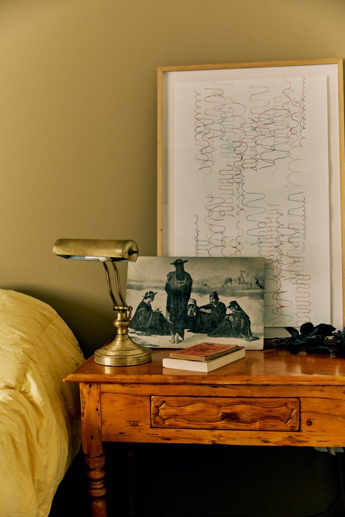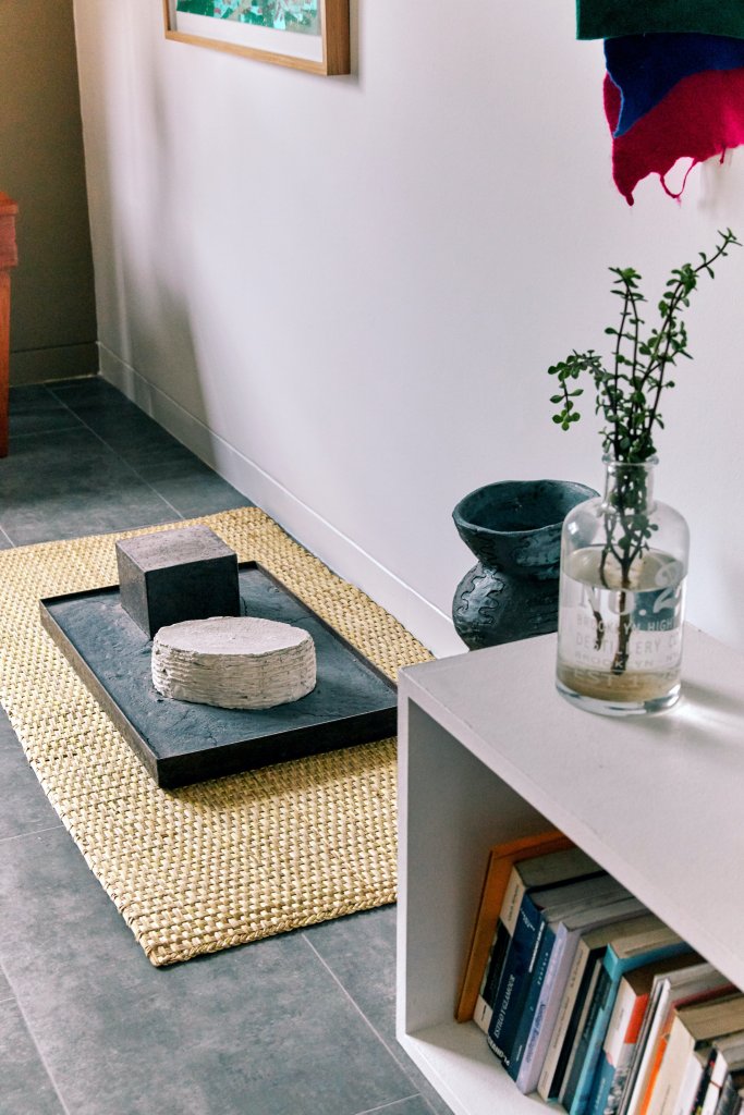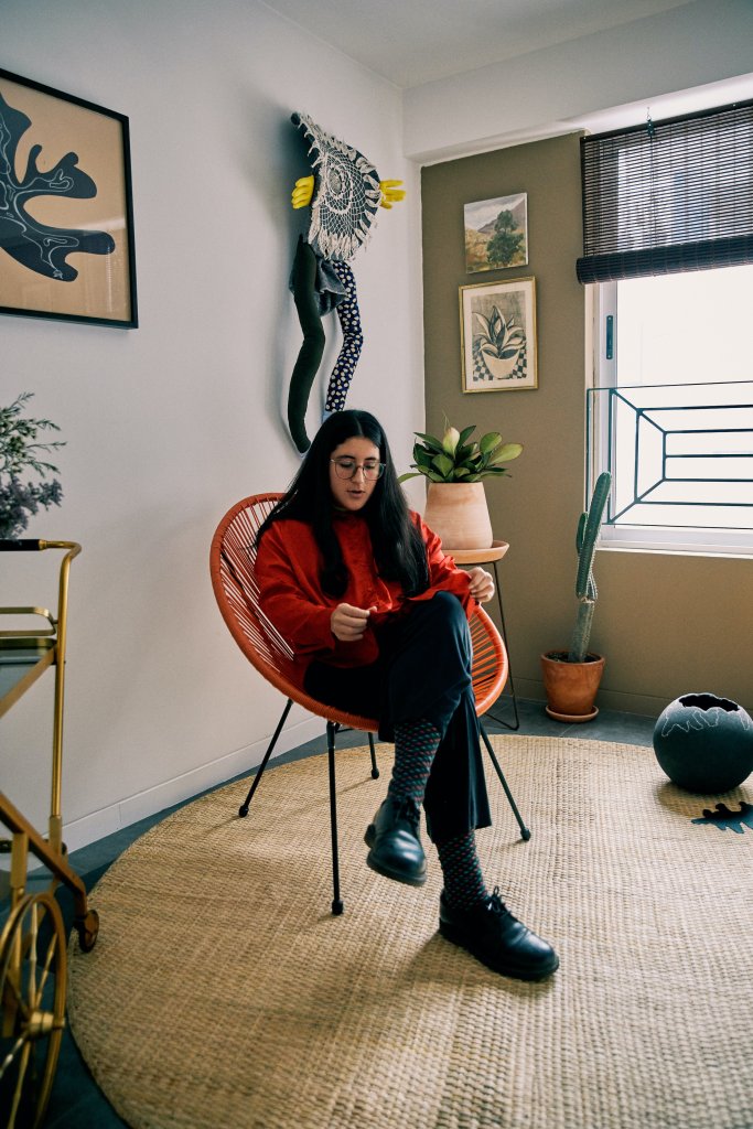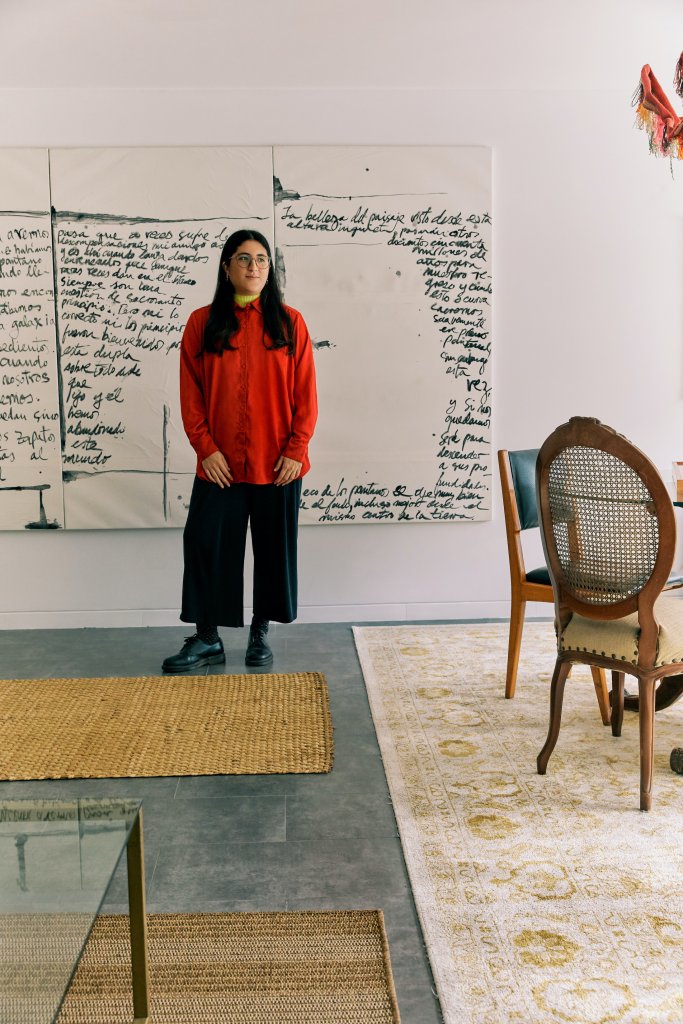 Mientras entraba y salía del depa constantemente, vivir en una habitación no tenía mayor problema. Hasta le gustaba la practicidad y ligereza de no estar atada a un espacio físico, de no necesitar tantas cosas. Pero cuando empezó la cuarentena se vio, de pronto, sola con su gata Sombra en un cuarto pequeño: afuera de su dormitorio, el depa era un espacio neutral y frío, sin ninguna comodidad, sin muebles, sin una mesa ni un sillón en el cual leer, nada. Comía en su cuarto, sobre la cama. La gata estaba estresada. Fueron dos primeros meses muy duros. Alejandra se dio cuenta de que no tenía una casa; se dio cuenta también de que tenía que “mirar más adentro”. En el ámbito profesional, le tocaba aportar a la escena local; en el personal, debía enriquecer su vida doméstica.