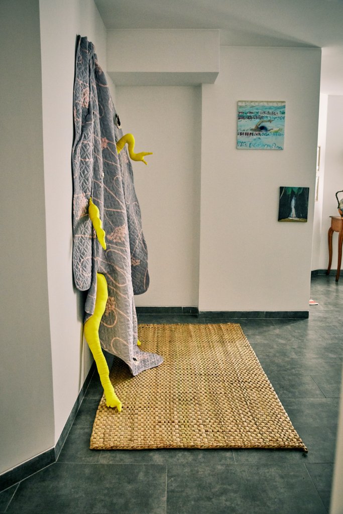 El departamento entero es una especie de montaje efímero porque Alejandra sabe que las piezas se van a ir. Para ella es un privilegio esta nueva forma de vivir porque es su trabajo en la galería lo que, por el momento, le permite estar rodeada así de arte. Le gusta que haya rotación de obras, que las cosas circulen. Le interesa que las obras se exhiban, y que cada cierto tiempo cambien de lugar le encanta, le da aire. “Es el objetivo de este espacio, que sea de tránsito de alguna manera, no me estoy aferrando a él”, dice. Aunque, pensándolo bien, “sí me pasa con algunas piezas que digo ‘¡Nooo! ¡Que no se vaya!’”, se ríe.