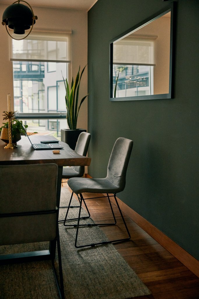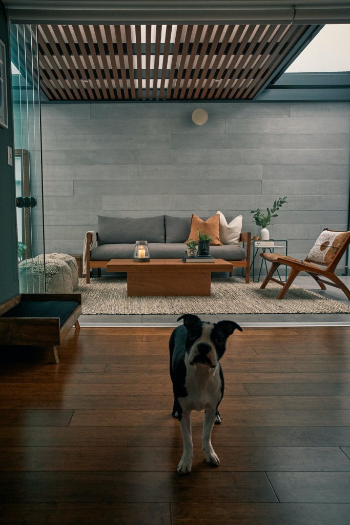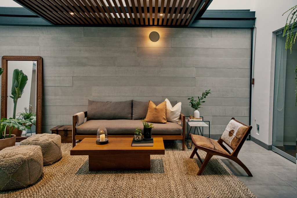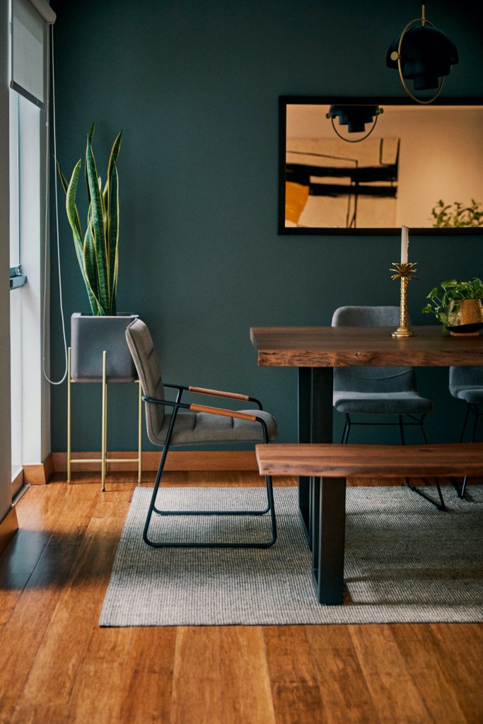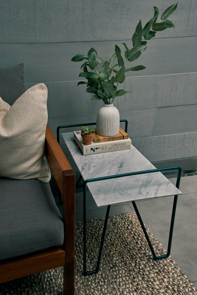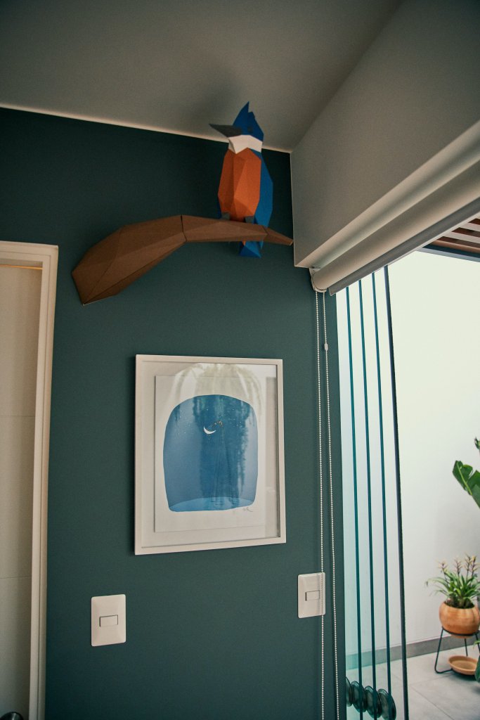 Macarena es Brand Manager de Síclo, una plataforma de indoor cycling y fitness, y su trabajo está muy conectado con bienestar y energía. Leyó un estudio sobre la luz natural relacionada a la productividad y se sintió identificada: en lugares iluminados se concentra más y, en general, trabaja más contenta. Desde que han terminado de decorar la terraza y de instalar el techo corredizo, esta se ha convertido en su oficina y en su lugar favorito de la casa. Aquí toma su cafecito por las tardes, o se sienta a hablar por teléfono con una amiga. Y con el pasar de las semanas, ha aprendido a convivir con los momentos de penumbra. Los colores que han elegido para el depa tienen un punto masculino, diferente, y hasta le parece que esa cierta oscuridad le da personalidad al lugar.