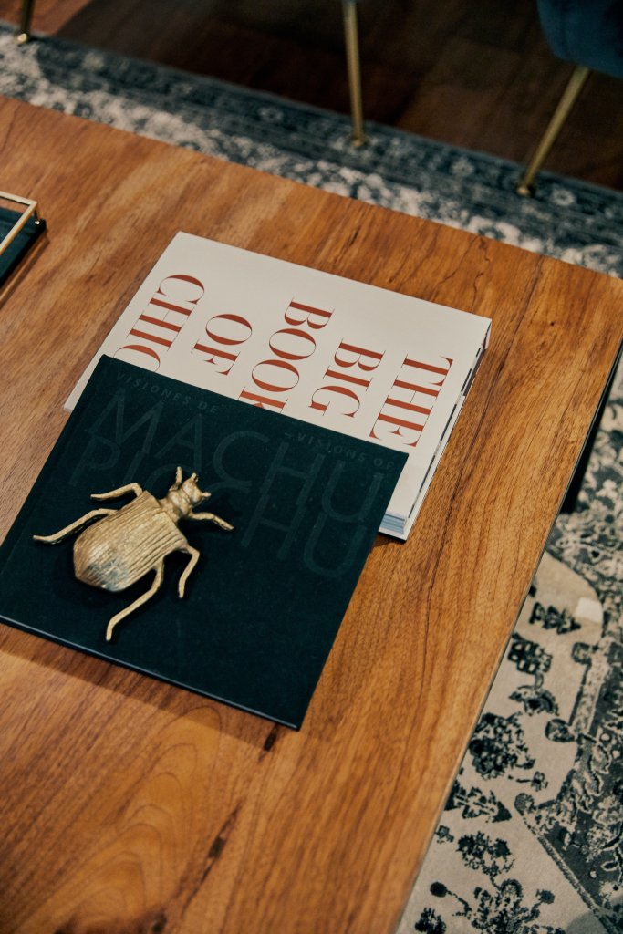 Una de las cosas que más ilusión le hacía de mudarse con Eduardo era poder decorar, por primera vez, un hogar propio. Cuando llegó a Ginebra ya todo el depa estaba listo y al estilo Ikea: Macarena solo se compró un clóset y ubicó sus pertenencias en ese nuevo mundo. Por eso fue tan especial para ella poder diseñar por completo el departamento en Lima. Contactó a su amiga la arquitecta Pascale De Col, y le pidió que la ayudara a hacer realidad su moodboard. Tenía mil ideas: estaba obsesionada con el art déco. Pero lo primero que compraron fue una pintura de Mari Pflucker que corona la sala. A partir de ahí fueron apareciendo los muebles y objetos. Para Macarena, todo se fue armando como un rompecabezas.