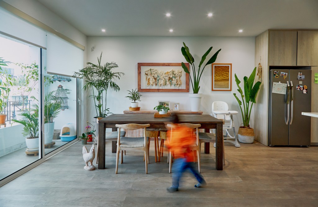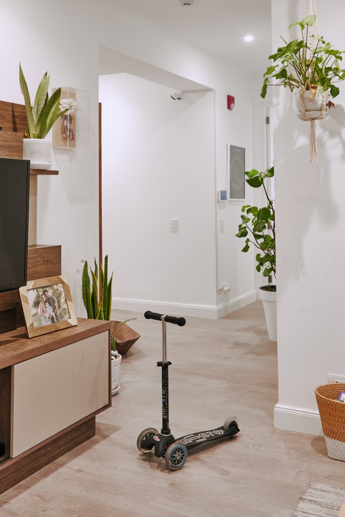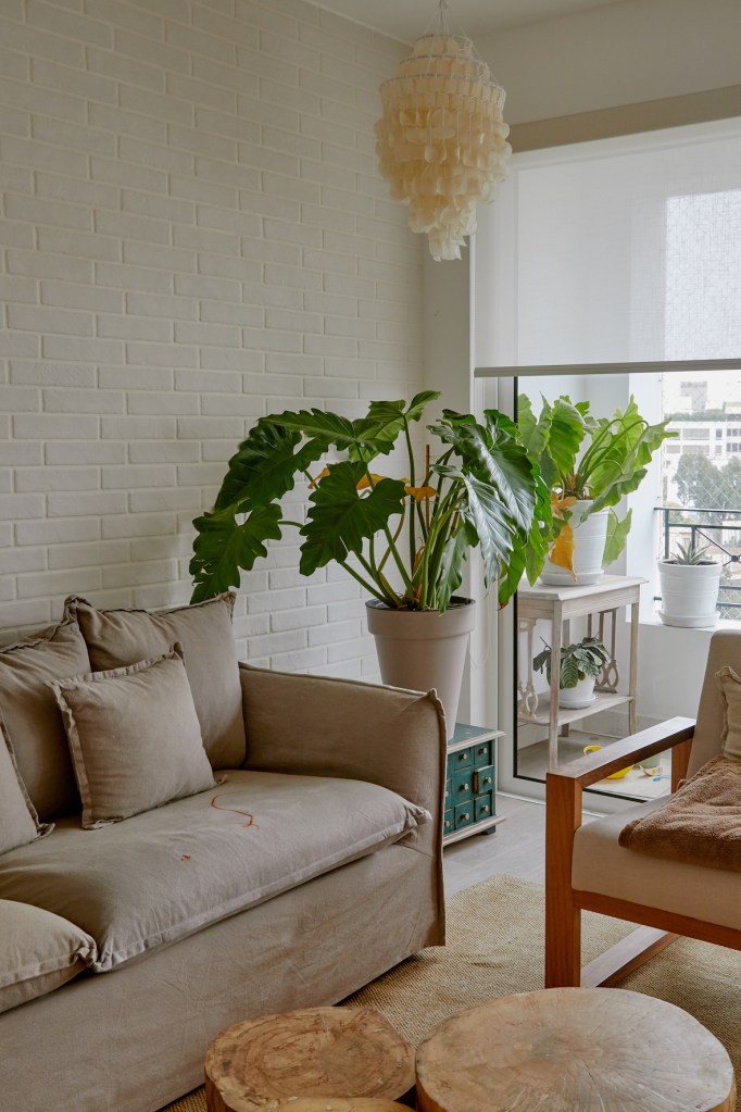 “Me pasó que no tenía un estilo definido. Es decir, siempre me ha gustado la decoración, y de hecho intenté estudiar eso en algún momento, pero habían pasado años luz desde que había vivido en un lugar que me interesase decorar. Cuando nos mudamos al primer depa los tres, empecé a comprar todo lo que me gustaba… pero que no necesariamente combinaba. Tenía muchas cosas lindas, pero no había una hilación. Al final, no lo sentía mío, no estaba tan bien acomodado. Así que, cuando llegó el momento de mudarse a este nuevo depa ya con Leo más grande, me puse la meta de que todos los ambientes se sientan conectados y como parte de una misma casa”.
