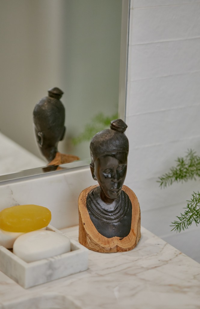 Podría pensarse que, por tener un papá suizo, Maud vivió desde pequeña entre dos casas y dos mundos. Pero, en realidad, ella tuvo ese hogar definido –el hogar de su infancia–, y fue siempre al lado de su mami. Primero, en un departamento en el que vivieron solas. Por aquella época, su mamá se iba a Tacora para comprar muebles antiguos muy baratos y restaurarlos. Era su pasión y era muy capa haciéndolo. Si algo sabe Maud de decoración se lo debe a su madre, a quien recuerda como una “superdecoradora”. La casa grande adonde se mudaron, y en la que nacieron sus hermanos menores, para Maud es una de las casas más bonitas que ha visto en la vida. Y todo se debió, siempre, a su mamá. Recuerda que no tuvieron sofá en la sala durante años, porque ella no encontraba el indicado: un día entraron a una tienda y vio una cama china y era justo lo que quería. Ya mayor, estudió restauración: puso su taller y trabajaba muebles de madera. Maud no se ha quedado con muchas de las cosas que eran de su mami después de que esta murió, pero sí guarda algunos objetos especiales y los tiene cerca. Como los bowls en madera tallada que están repartidos por distintos ambientes del depa. O la caja de mayólicas cusqueñas pintadas a mano, hermosas, que su mami compró pensando en una futura casa de campo. Maud las usará algún día. Su mami fue su maestra.