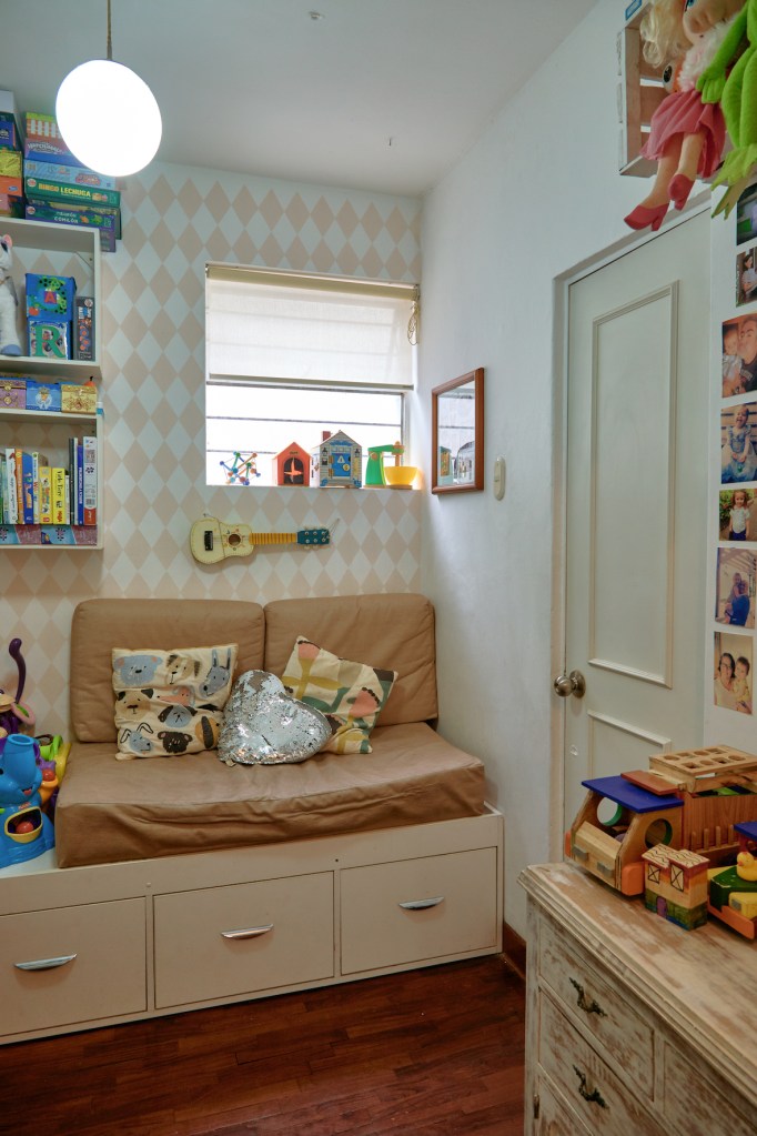 Eran jóvenes y no tenían pensado tener hijos pronto; el departamento sería para ellos. No había presupuesto para ponerlo tal cual lo querían rápidamente, así que poco a poco fueron avanzando. Lo más urgente era cambiar las tuberías, los baños y la cocina. María José llevó varios muebles de la casa de sus padres y recibieron otros tantos de la abuelita de Rodrigo. A María José siempre le ha gustado lo vintage y con lo que tenían y lo que iba apareciendo, le fueron dando forma a su vida juntos.