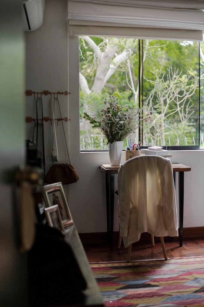 Le gusta la energía de esta casa. Aquí se siente protegida. Los espacios reciben una luz que parece de bosque: es algo sombría pero el sol se cuela entre la vegetación. Los árboles del parque llenan la vista de sus ventanas, y es una delicia despertarse en la mañana y sentir el sonido de los pájaros, o que sus hijos se emocionen porque una ardilla se metió a la terraza. Para Claudia, estar en su casa es como vivir en un pequeño cuento.