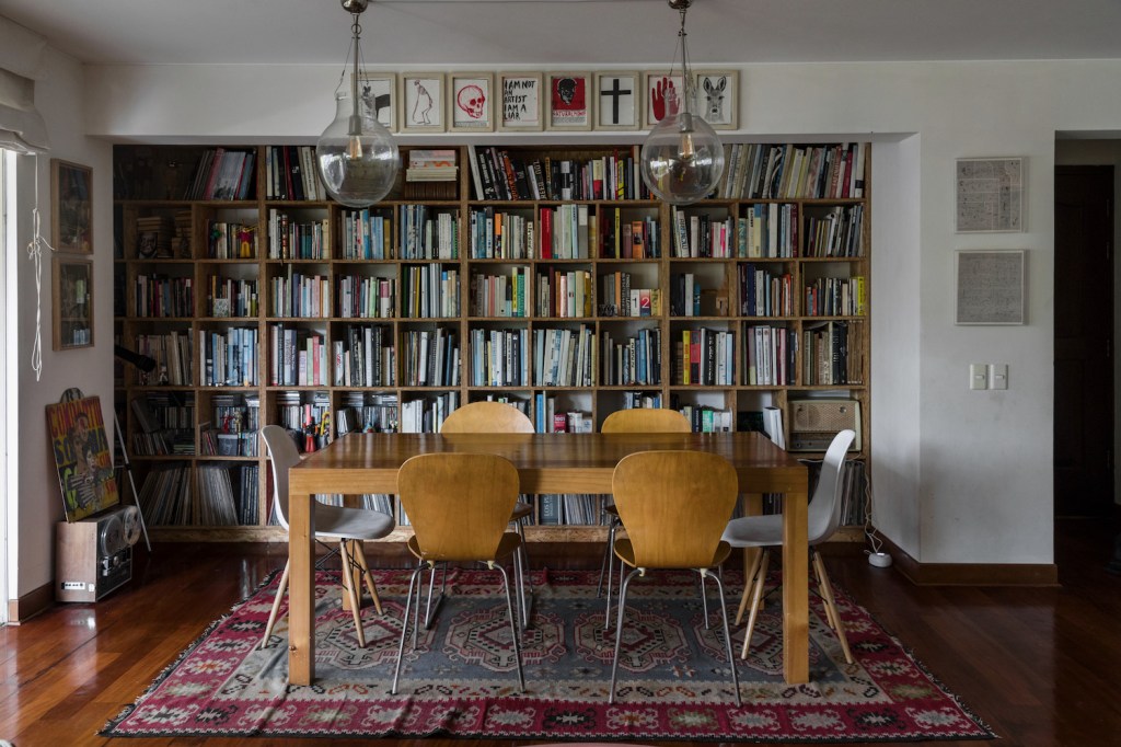 En su casa de La Molina tenían un librero que colgaba del techo y había que subirse a una escalera para alcanzar las repisas. Era un mueble muy especial, sin embargo, le faltaba funcionalidad. En Barranco, tomaron casi toda la pared del comedor para montar un librero que les permite realmente sacar y poner todos los libros que revisan muy a menudo. Goster tiene decenas de libros de diseño y arte; muchos los usa como referencia, pero la verdad es que no los compra pensando en el trabajo sino por puro placer. Los sábados saca un par de volúmenes, pone música y los lee o los mira. Se han dividido las repisas: las de Goster tienen también juguetes.