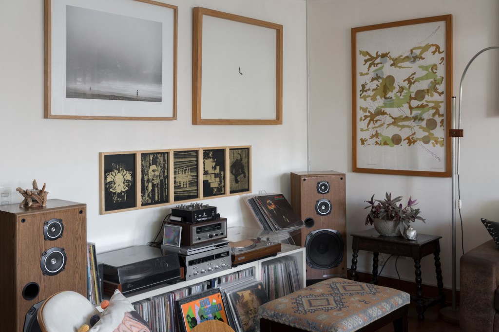 Hasta antes de la pandemia, en casa de José Antonio Mesones, Goster, la música sonaba todo el día. Era de esperarse. El premiado diseñador gráfico y director creativo del estudio Partners, ha contado varias veces que la música fue su primera pasión y su entrada al mundo del diseño. Eso se refleja en su lenguaje visual, en muchos de sus trabajos (sobre todo en los proyectos personales) y en sus tres nominaciones al Grammy por Best Record Packaging. Pero bueno, como pasó con todos, la cuarentena requirió ajustes. Hay que compartir el espacio para trabajar y bajar el volumen cuando su esposa, Ana Paola Durand, comunicadora y docente, dicta clases, o cuando Amadeo, el hijo de ambos, está en plena sesión virtual de cole. Pero existen rituales que no cambian para Goster: desayunar con música y escuchar un par de discos en la noche. Al menos uno.